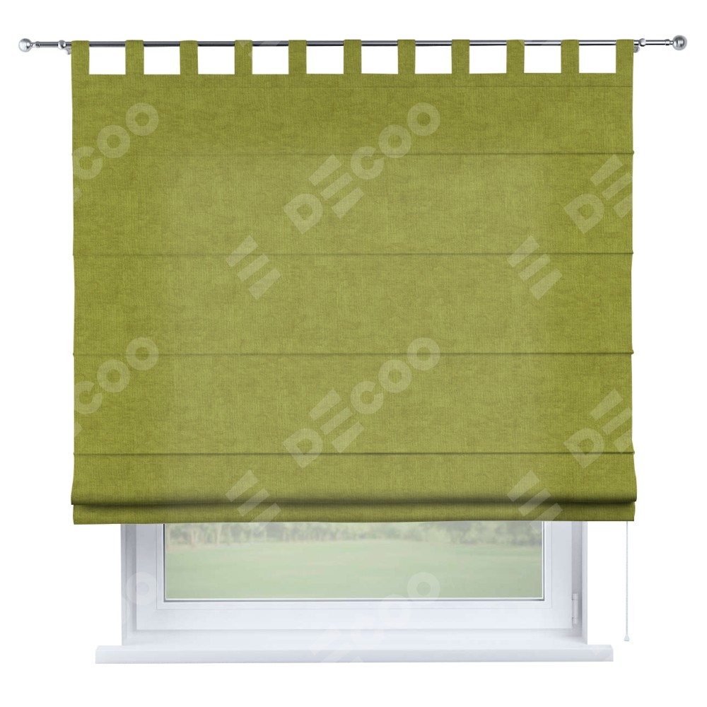 Римская штора производителя «Cortin», используется для проёма, пошита из ткани канвас зелёное яблоко, артикул ткани v-370. Данная модель пошита на петлях, комплектуется на выбор круглым карнизом и подходит для монтажа на стену. Римская штора на петлях имеет простую систему регулировки высоты, отличительным преимуществом данной модели является простой способ монтажа. Достаточно повесить ее на трубу и штора готова!