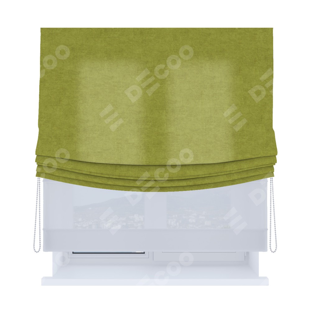 Римская штора «Кортин», канвас зелёное яблоко, день-ночь с мягкими складками