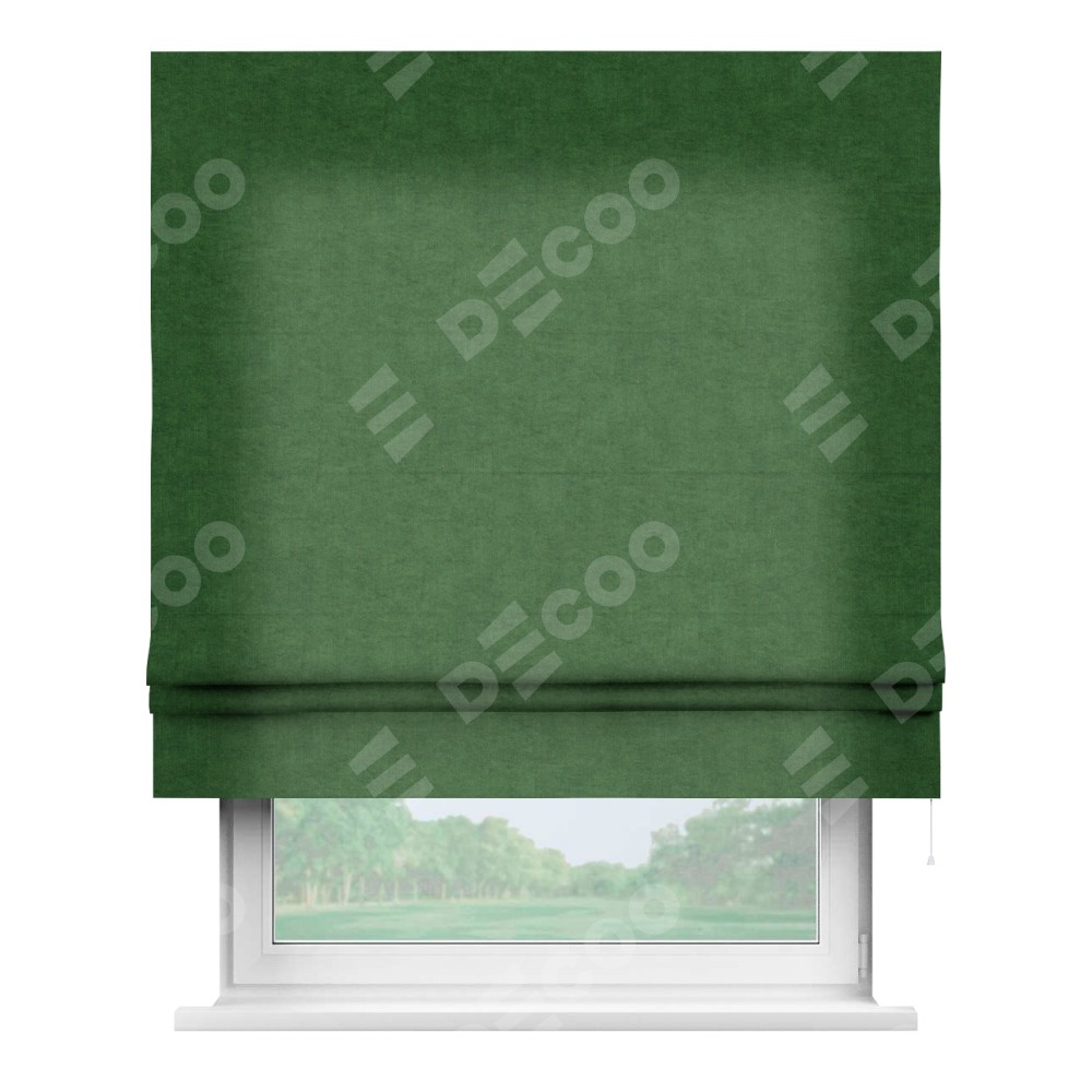 Римская штора производителя «Cortin», используется для проёма, пошита из ткани канвас зелёный, артикул ткани v-16. Имеет универсальный механизм и подходит для монтажа: на потолок, на стену и в нишу.