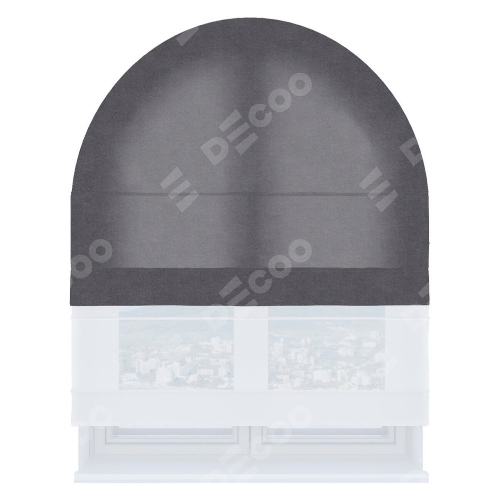 Римская штора день-ночь производителя «Cortin», используется для арочного проёма, пошита из двух полотен, с лицевой стороны канвас лавандовый артикул v-223, вторая ткань тюль (по стандарту комплектуется тюль белого цвета артикул V-01). Штора шьётся по индивидуальным размерам, для данного типа римской шторы возможная ширина от 60 до 300 см. Удобное управление каждой шторой отдельно.