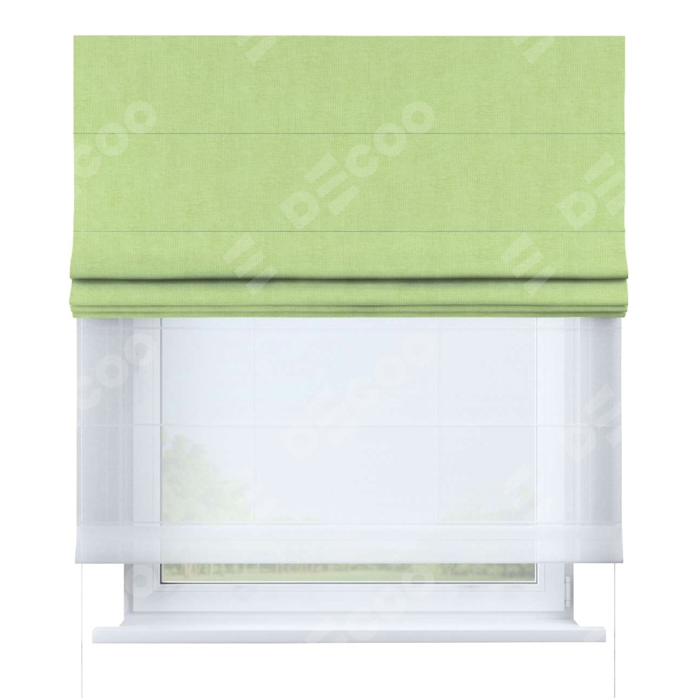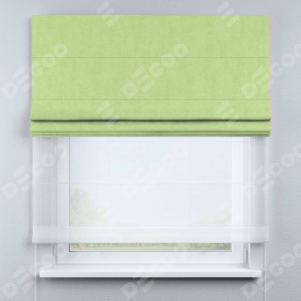 Римская штора день-ночь производителя «Cortin», используется для проёма, пошита из двух полотен, с лицевой стороны канвас липовый артикул v-207, вторая ткань тюль (по стандарту комплектуется тюль белого цвета артикул V-01). Имеет универсальный механизм и подходит для монтажа: на потолок, на стену и в нишу.