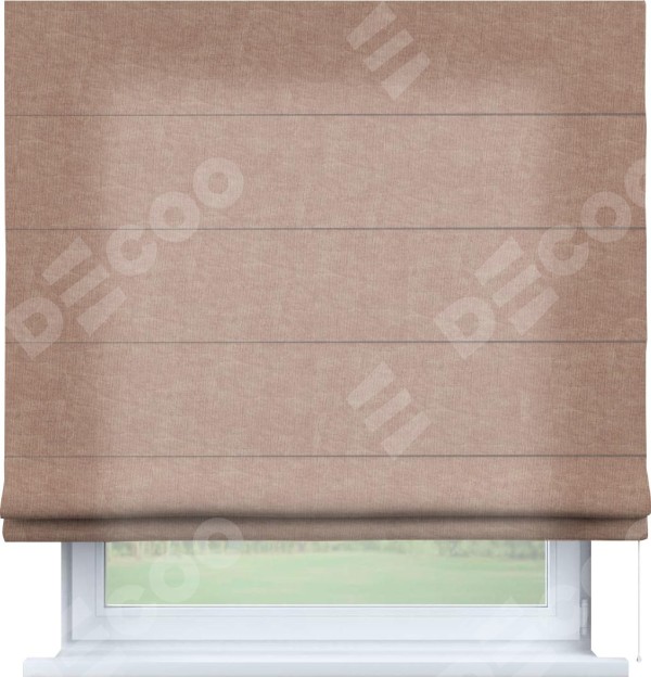 Римская штора производителя «Cortin», используется для проёма, пошита из ткани канвас розовая пудра, артикул ткани v-34. Имеет универсальный механизм и подходит для монтажа: на потолок, на стену и в нишу.