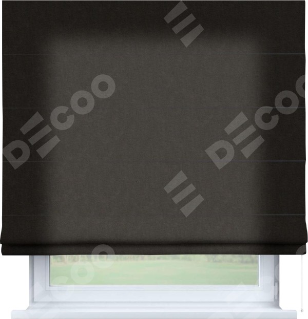 Римская штора производителя «Cortin», используется для проёма, пошита из ткани канвас тёмно-коричневый, артикул ткани v-13. Имеет универсальный механизм и подходит для монтажа: на потолок, на стену и в нишу.