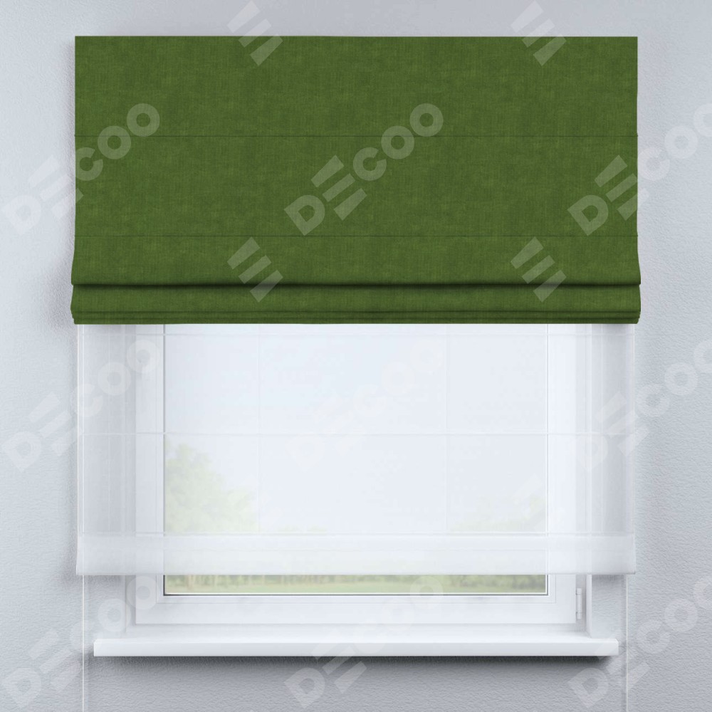 Римская штора день-ночь производителя «Cortin», используется для проёма, пошита из двух полотен, с лицевой стороны канвас трава артикул v-473, вторая ткань тюль (по стандарту комплектуется тюль белого цвета артикул V-01). Имеет универсальный механизм и подходит для монтажа: на потолок, на стену и в нишу.