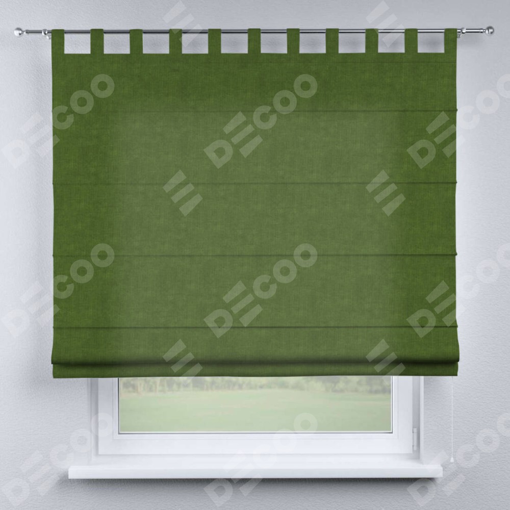 Римская штора производителя «Cortin», используется для проёма, пошита из ткани канвас трава, артикул ткани v-473. Данная модель пошита на петлях, комплектуется на выбор круглым карнизом и подходит для монтажа на стену. Римская штора на петлях имеет простую систему регулировки высоты, отличительным преимуществом данной модели является простой способ монтажа. Достаточно повесить ее на трубу и штора готова!