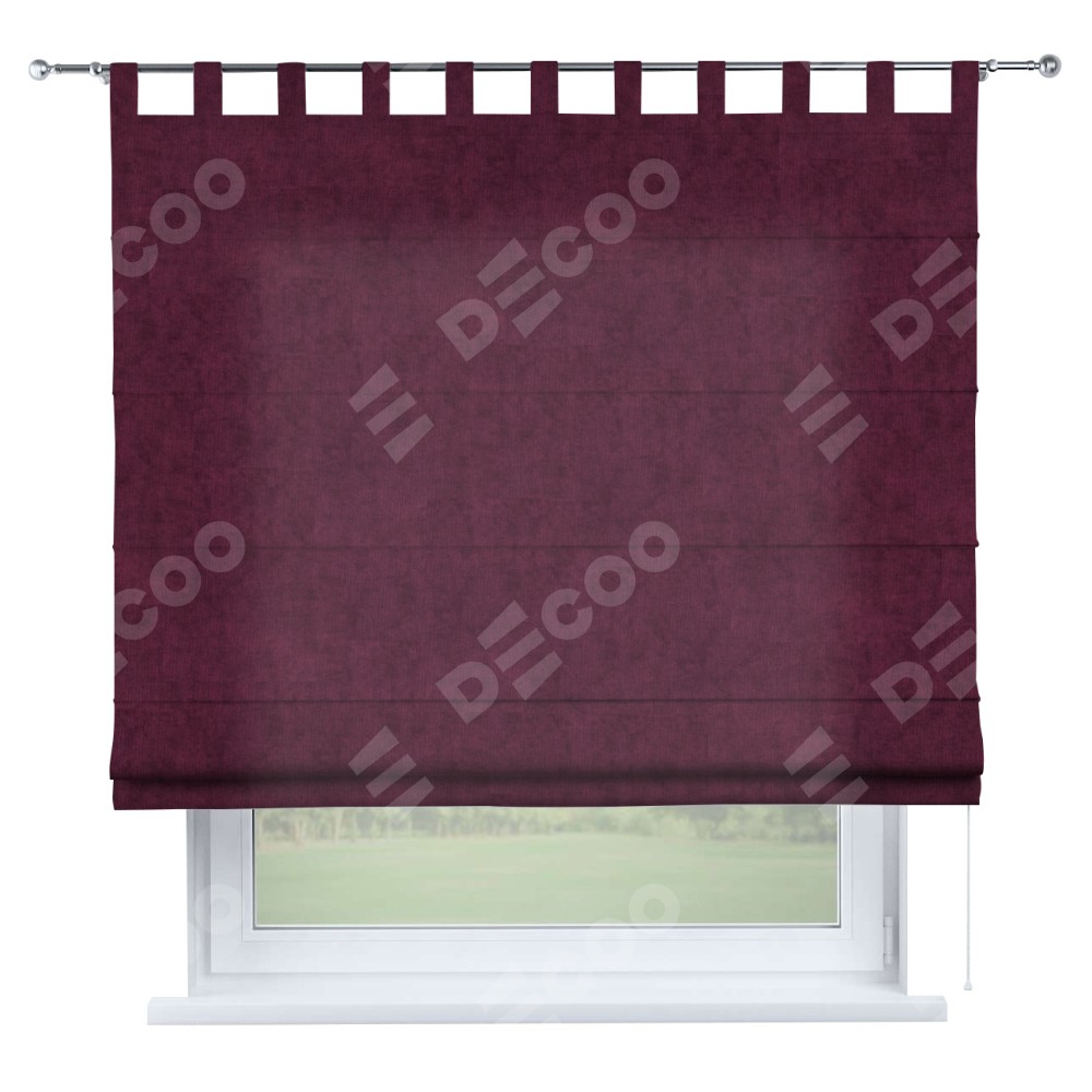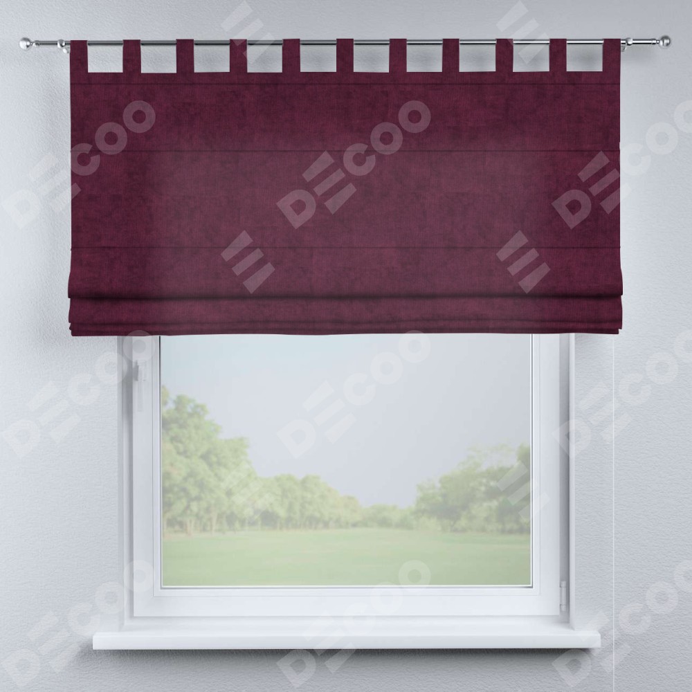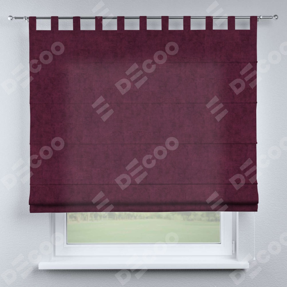 Римская штора производителя «Cortin», используется для проёма, пошита из ткани канвас фиолетовый, артикул ткани v-99. Данная модель пошита на петлях, комплектуется на выбор круглым карнизом и подходит для монтажа на стену. Римская штора на петлях имеет простую систему регулировки высоты, отличительным преимуществом данной модели является простой способ монтажа. Достаточно повесить ее на трубу и штора готова!