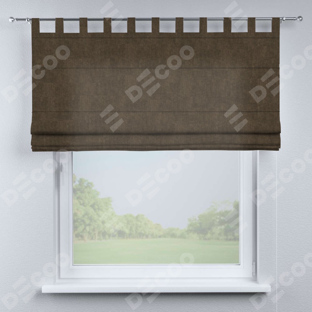 Римская штора производителя «Cortin», используется для проёма, пошита из ткани канвас шоколадный, артикул ткани v-193. Данная модель пошита на петлях, комплектуется на выбор круглым карнизом и подходит для монтажа на стену. Римская штора на петлях имеет простую систему регулировки высоты, отличительным преимуществом данной модели является простой способ монтажа. Достаточно повесить ее на трубу и штора готова!