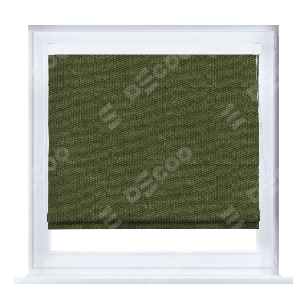 Римская штора производителя «Cortin», устанавливается на створку окна, пошита из ткани лён димаут салатовый, артикул 91002. Штора шьётся по индивидуальным размерам, для данного типа римской шторы возможная ширина от 35 до 150 см., высота до 250 см.
