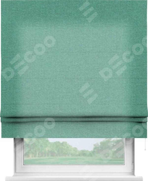 Римская штора «Кортин», лён светло-бирюзовый, для проёма