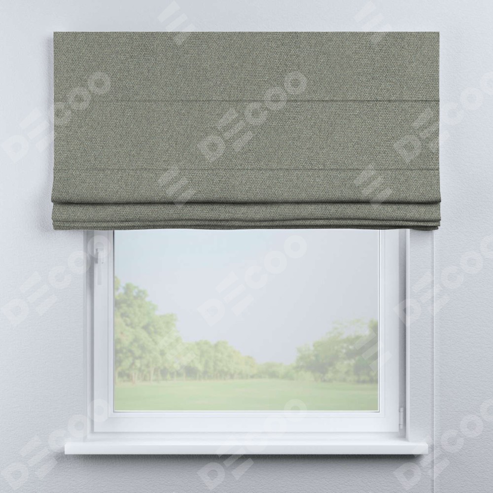 Римская штора производителя «Cortin», используется для проёма, пошита из ткани лён димаут серый, артикул ткани 91009. Имеет универсальный механизм и подходит для монтажа: на потолок, на стену и в нишу.