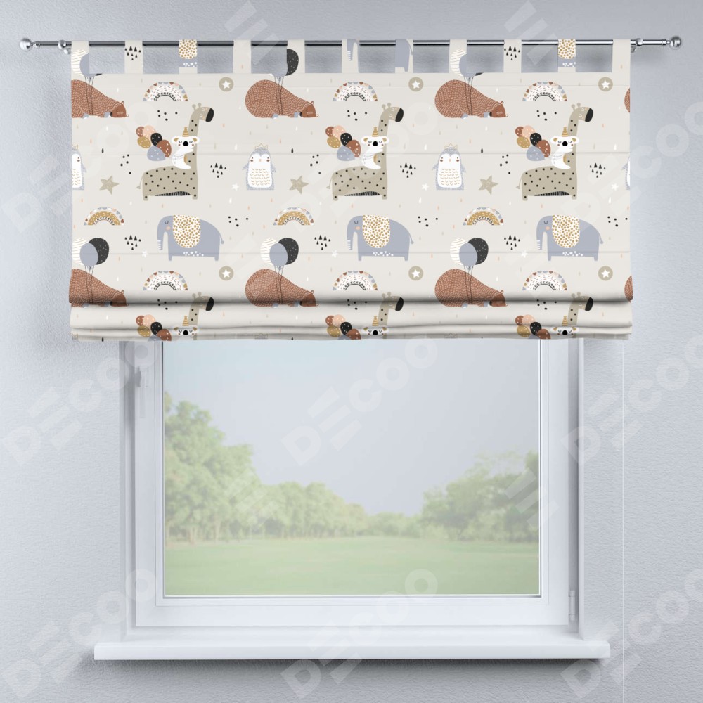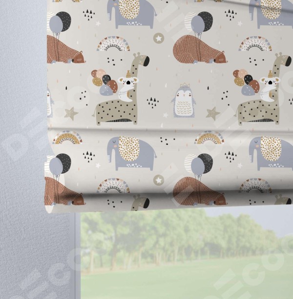 Римская штора производителя «Cortin», используется для проёма, пошита из ткани блэкаут с нанесением сублимационной печати «Вечеринка животных». Данная модель пошита на петлях, комплектуется на выбор круглым карнизом и подходит для монтажа на стену. Римская штора на петлях имеет простую систему регулировки высоты, отличительным преимуществом данной модели является простой способ монтажа. Достаточно повесить ее на трубу и штора готова!