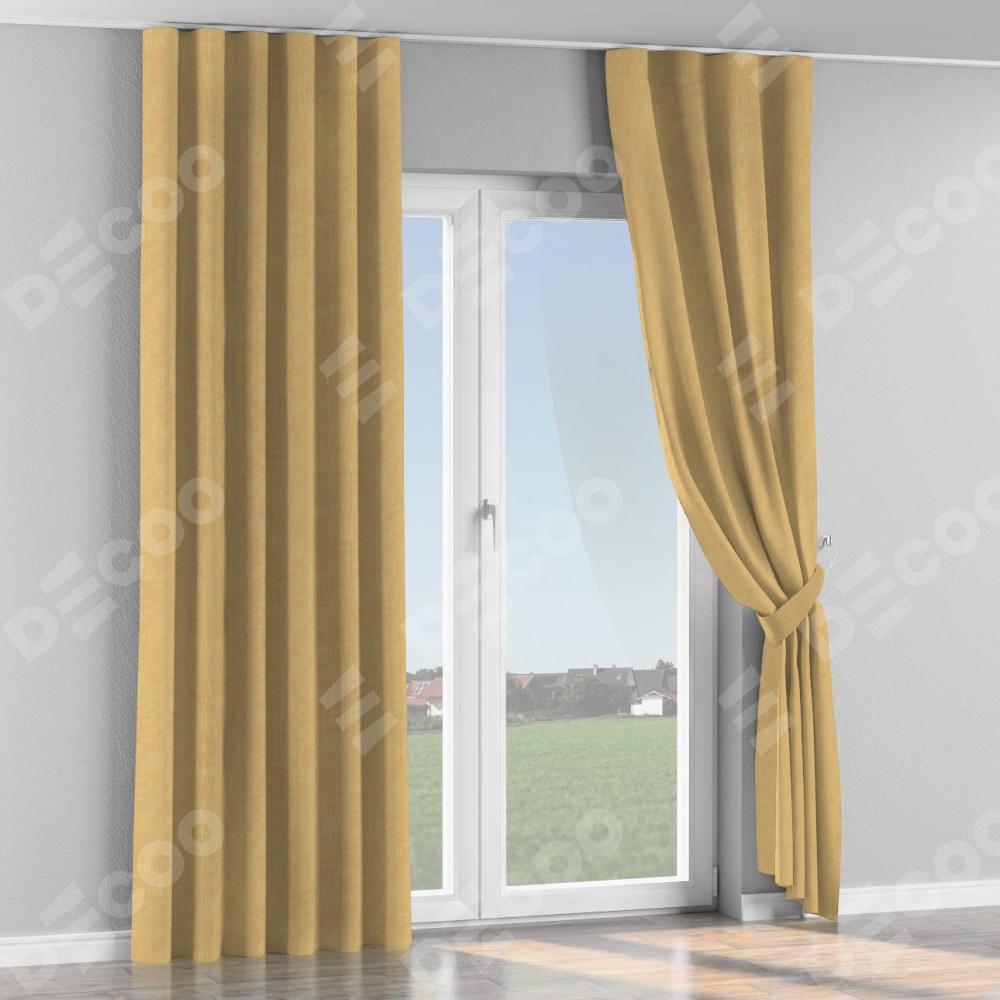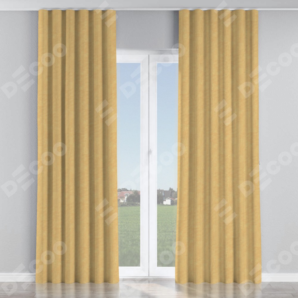 Комплект прямых штор, от производителя «Cortin», пошиты из ткани канвас абрикосовый, артикул ткани v-448. С изнаночной стороны в верхней части штор пристрачивается шторная лента с декоративными складками «Волна». Для создания элегантных складок прямые шторы шьются по стандарту с коэффициентом 1:2 (на 100 см. ширины проёма 200 см. ширины ткани).