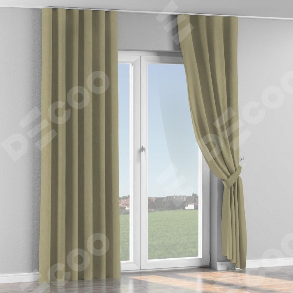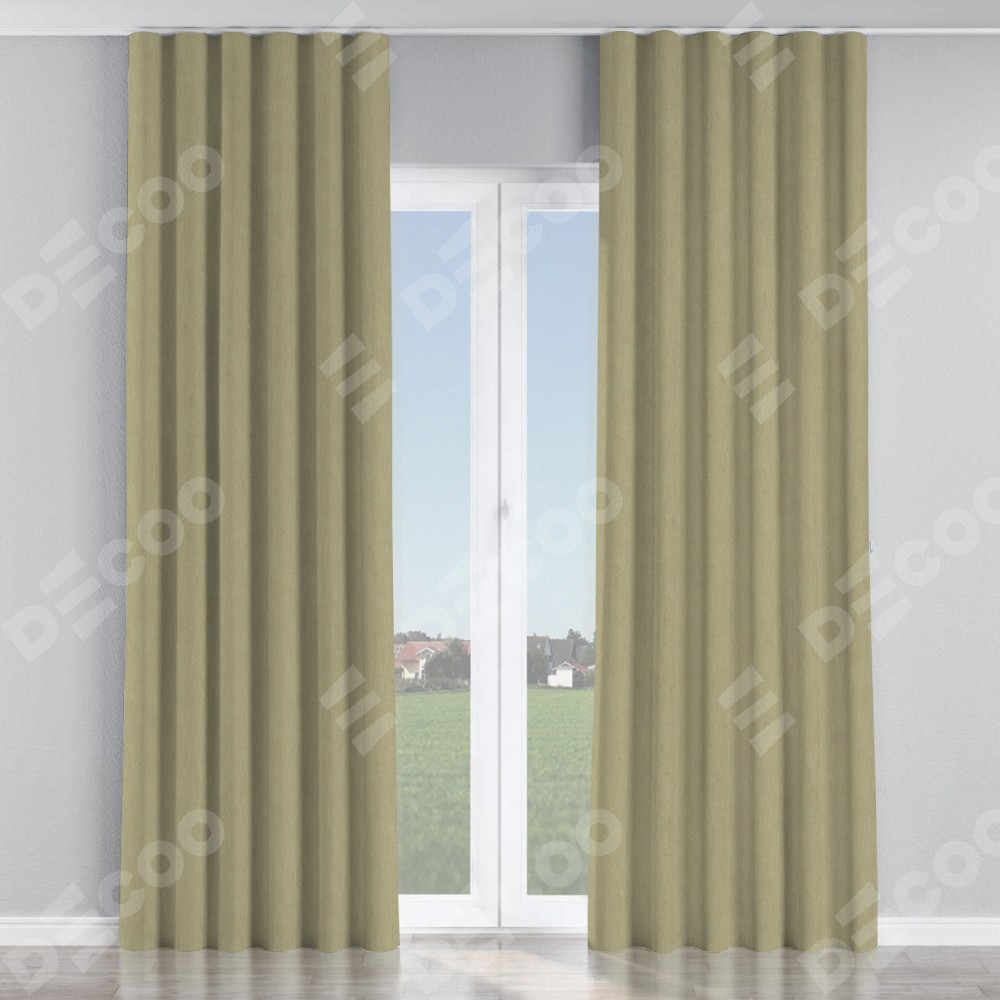 Комплект прямых штор, от производителя «Cortin», пошиты из ткани канвас латте, артикул ткани v-12490. С изнаночной стороны в верхней части штор пристрачивается шторная лента с декоративными складками «Волна». Для создания элегантных складок прямые шторы шьются по стандарту с коэффициентом 1:2 (на 100 см. ширины проёма 200 см. ширины ткани).