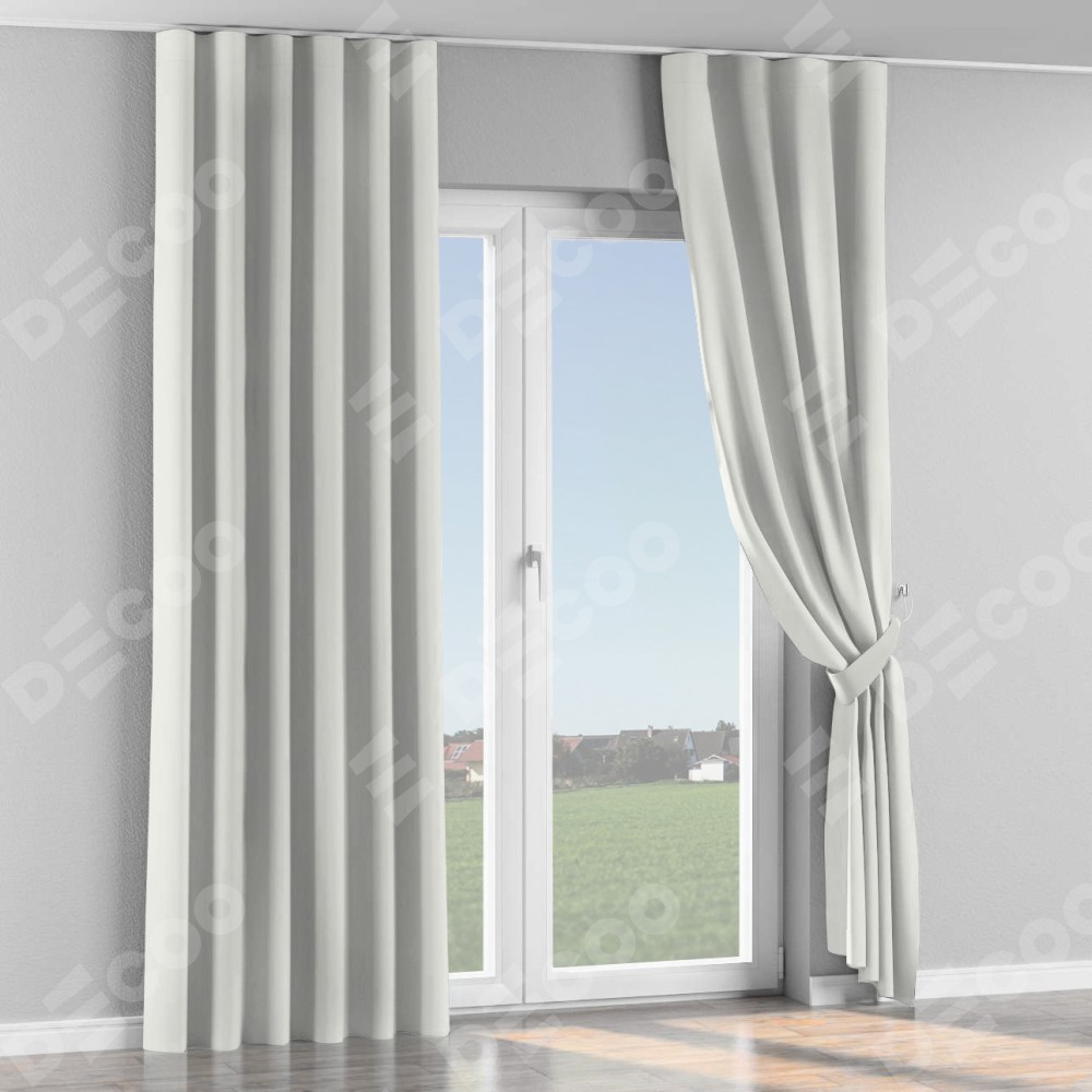 Комплект прямых штор, от производителя «Cortin», пошиты из ткани канвас молочный, артикул ткани v-93. С изнаночной стороны в верхней части штор пристрачивается шторная лента с декоративными складками «Волна». Для создания элегантных складок прямые шторы шьются по стандарту с коэффициентом 1:2 (на 100 см. ширины проёма 200 см. ширины ткани).