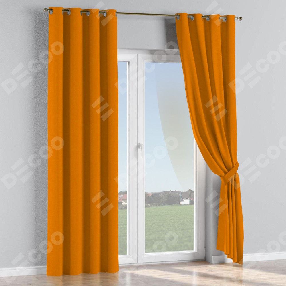 Комплект прямых штор, от производителя «Cortin», пошиты из ткани канвас оранжевый, артикул ткани v-106. Данная модель пошита на люверсах, комплектуется на выбор круглым карнизом и подходит для монтажа на стену или потолок. Прямые шторы на люверсах шьются по стандарту с коэффициентом 1/2 (на 100 см. ширины проёма 200 см. ширины ткани), отличительным преимуществом данной модели является простой способ монтажа. Достаточно повесить ее на трубу и штора готова!