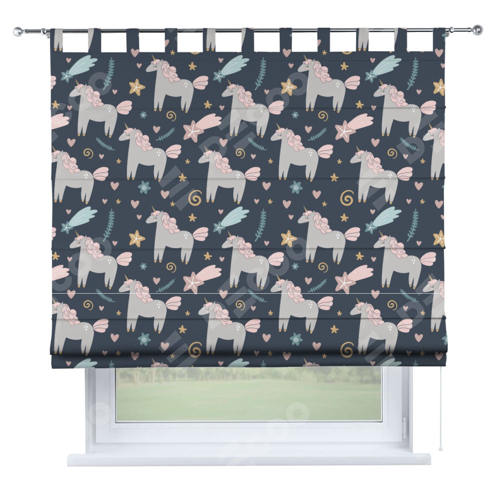 Римская штора «Кортин» на петлях «Милые единороги»