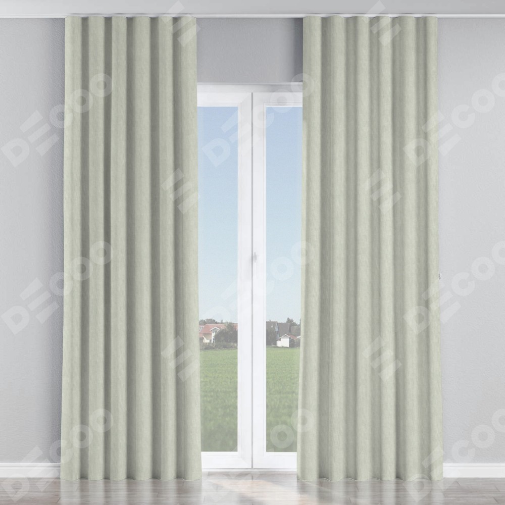 Комплект прямых штор, от производителя «Cortin», пошиты из ткани канвас светло-серый, артикул ткани v-371. С изнаночной стороны в верхней части штор пристрачивается шторная лента с декоративными складками «Волна». Для создания элегантных складок прямые шторы шьются по стандарту с коэффициентом 1:2 (на 100 см. ширины проёма 200 см. ширины ткани).