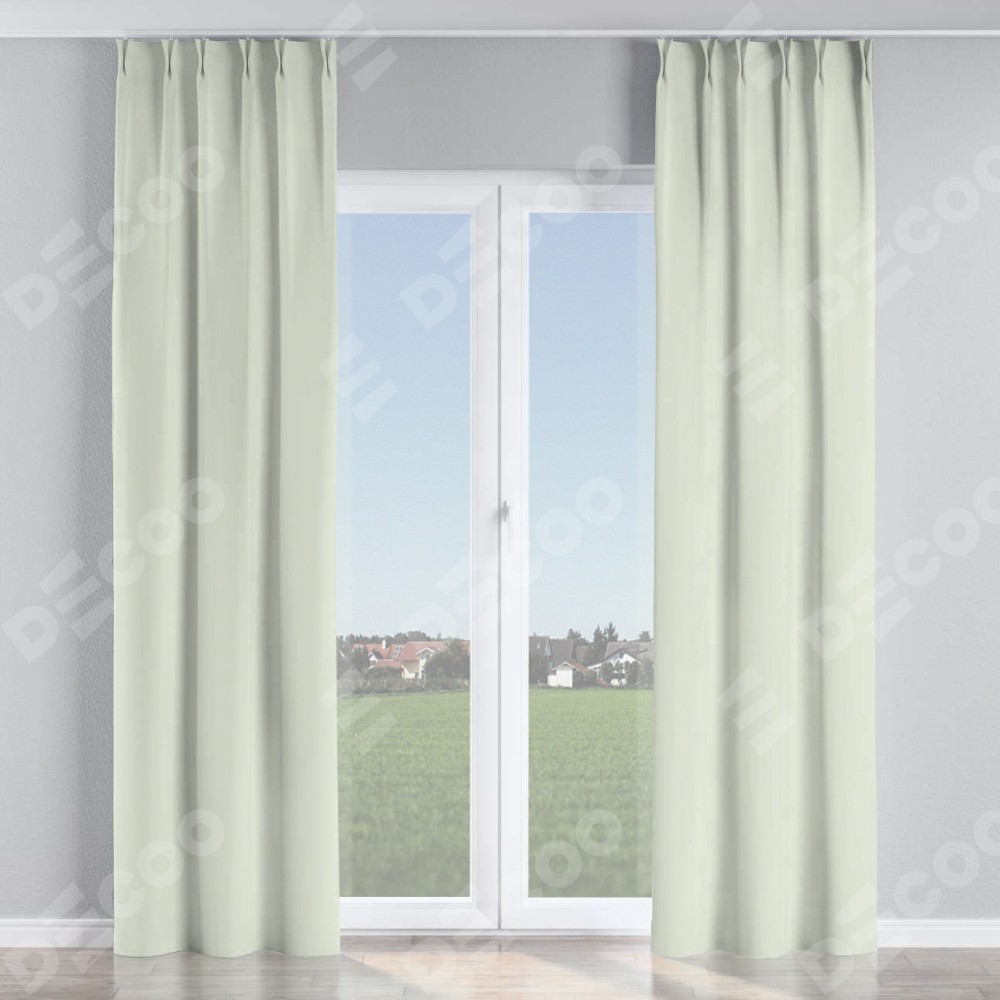 Комплект прямых штор, от производителя «Cortin», пошиты из ткани канвас сливочный, артикул ткани v-94. С изнаночной стороны в верхней части штор пристрачивается шторная лента с декоративными складками «Кустик». Для создания элегантных складок прямые шторы шьются по стандарту с коэффициентом 1:2 (на 100 см. ширины проёма 200 см. ширины ткани).