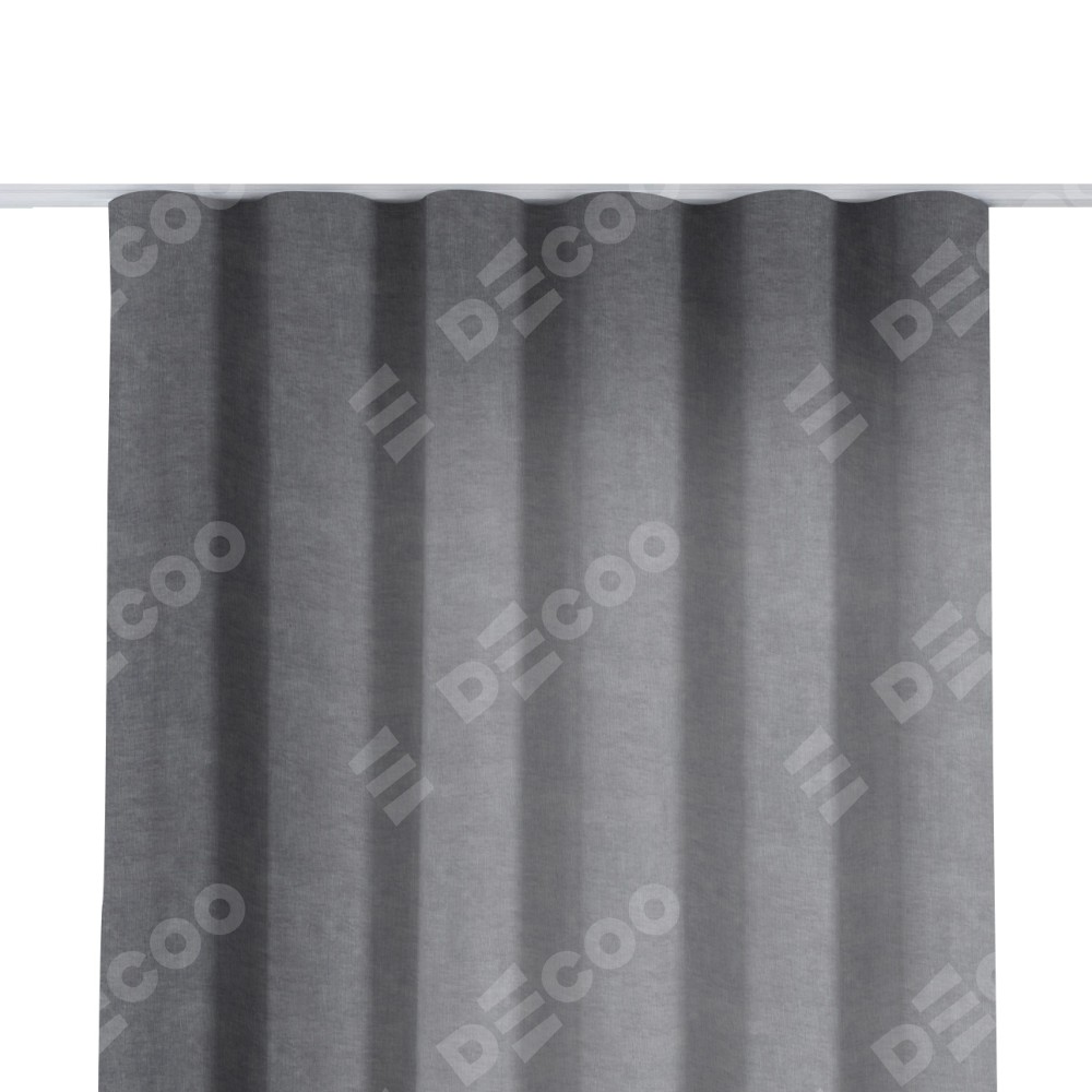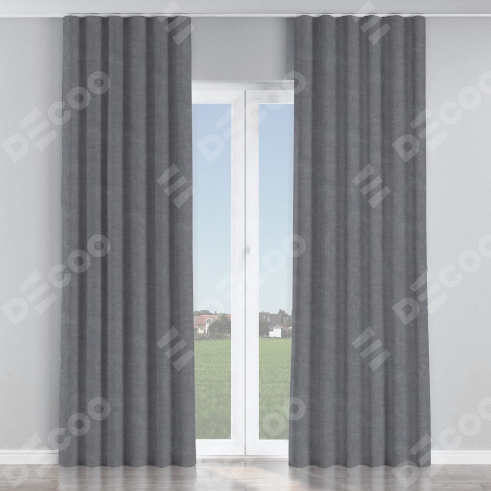 Комплект прямых штор, от производителя «Cortin», пошиты из ткани канвас стальной, артикул ткани v-1082. С изнаночной стороны в верхней части штор пристрачивается шторная лента с декоративными складками «Волна». Для создания элегантных складок прямые шторы шьются по стандарту с коэффициентом 1:2 (на 100 см. ширины проёма 200 см. ширины ткани).