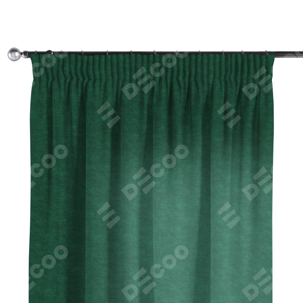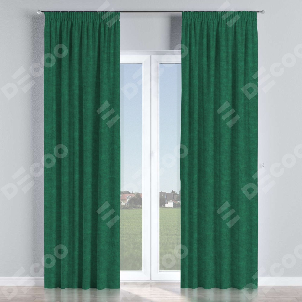Комплект прямых штор, от производителя «Cortin», пошиты из ткани канвас тёмно-зелёный, артикул ткани v-469. С изнаночной стороны в верхней части штор пристрачивается шторная лента с декоративными складками «Карандаш». Для создания элегантных складок прямые шторы шьются по стандарту с коэффициентом 1:2 (на 100 см. ширины проёма 200 см. ширины ткани).