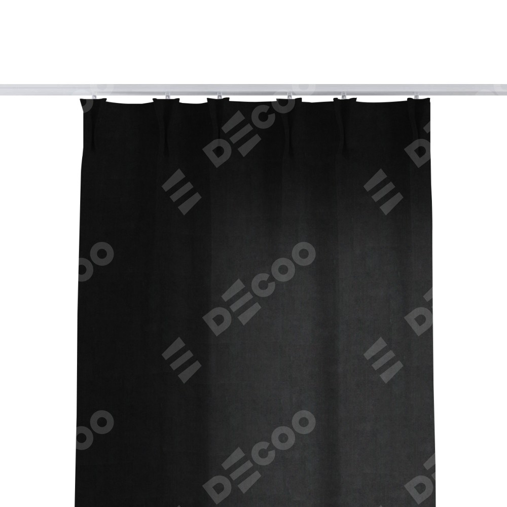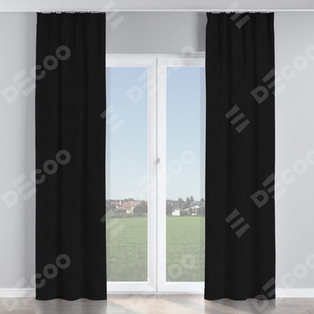 Комплект прямых штор, от производителя «Cortin», пошиты из ткани канвас черный, артикул ткани v-194. С изнаночной стороны в верхней части штор пристрачивается шторная лента с декоративными складками «Кустик». Для создания элегантных складок прямые шторы шьются по стандарту с коэффициентом 1:2 (на 100 см. ширины проёма 200 см. ширины ткани).