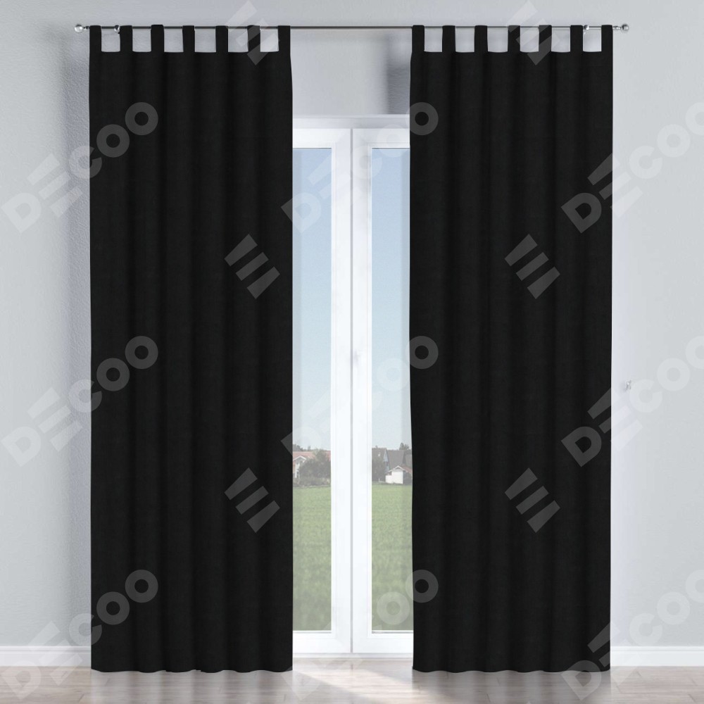 Комплект прямых штор, от производителя «Cortin», пошиты из ткани канвас черный, артикул ткани v-194. Данная модель пошита на петлях, комплектуется на выбор круглым карнизом и подходит для монтажа на стену или потолок. Прямые шторы на петлях шьются по стандарту с коэффициентом 1/2 (на 100 см. ширины проёма 200 см. ширины ткани), отличительным преимуществом данной модели является простой способ монтажа. Достаточно повесить ее на трубу и штора готова!