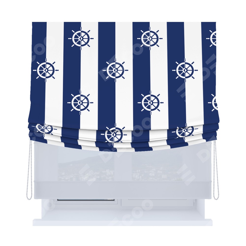 Римская штора «Кортин», день-ночь с мягкими складками, «Полоски и штурвалы»