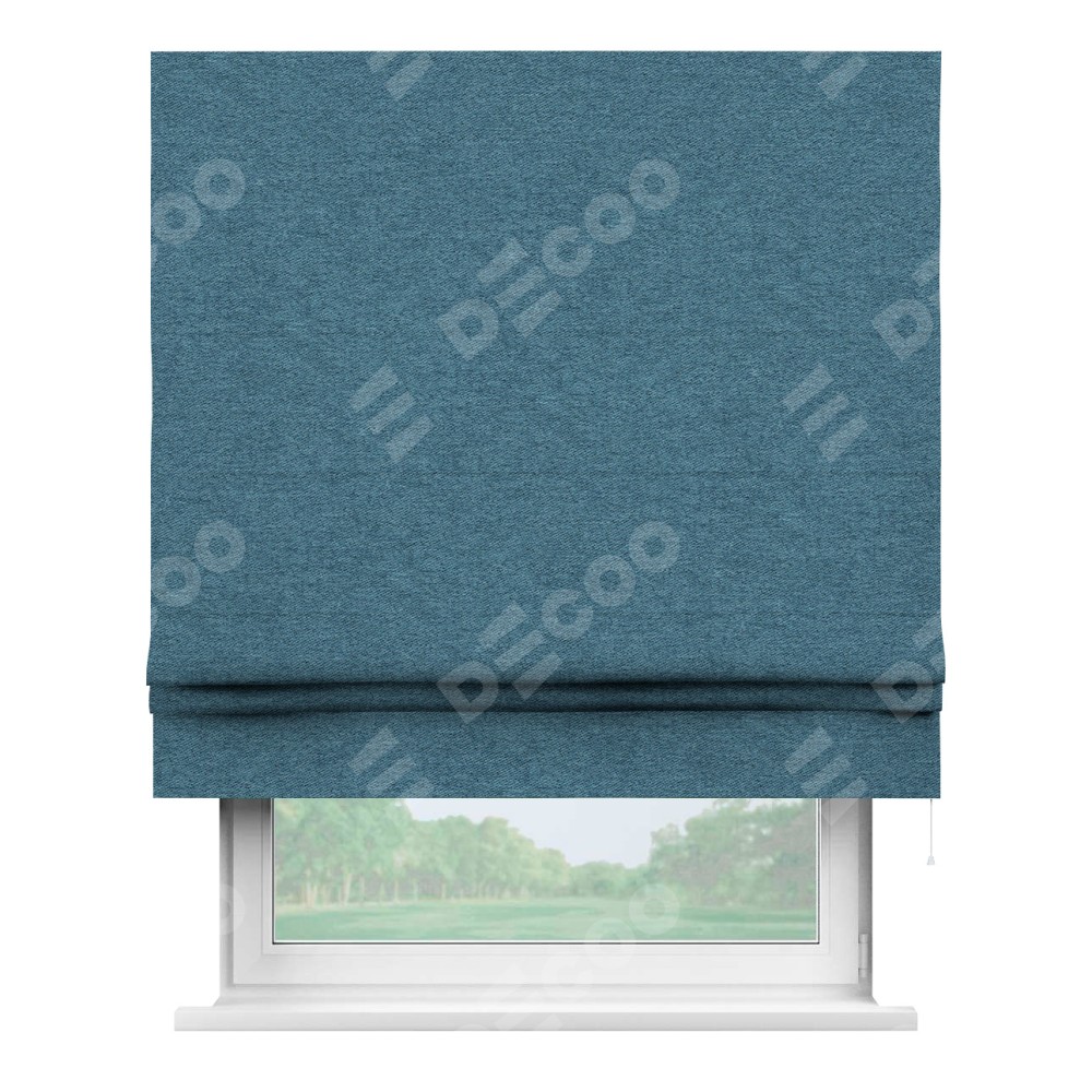 Римская штора «Кортин» для проема, ткань твид блэкаут, светло-синий