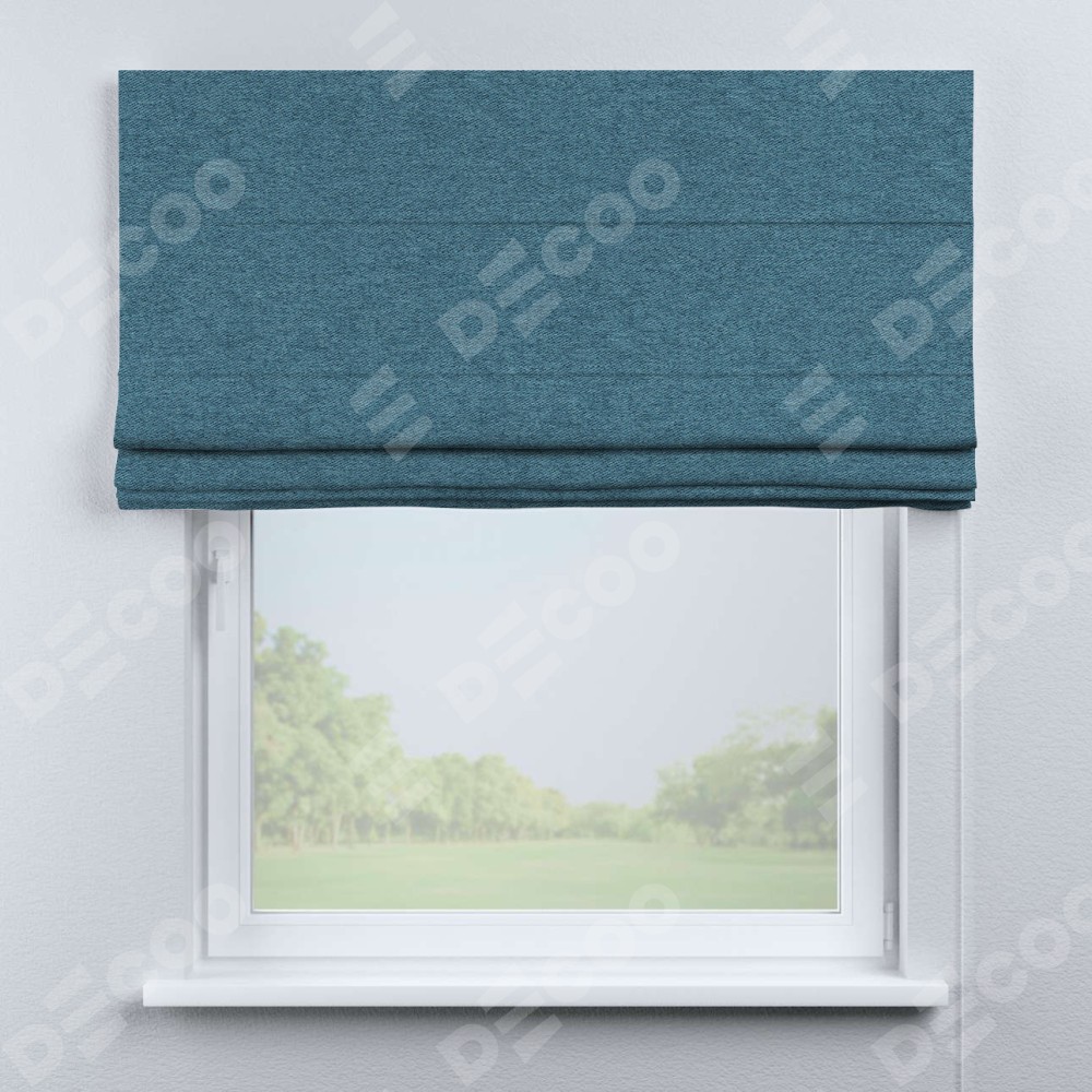 Римская штора производителя «Cortin», используется для проёма, пошита из ткани твид блэкаут светло-синий, артикул ткани 90935. Имеет универсальный механизм и подходит для монтажа: на потолок, на стену и в нишу.