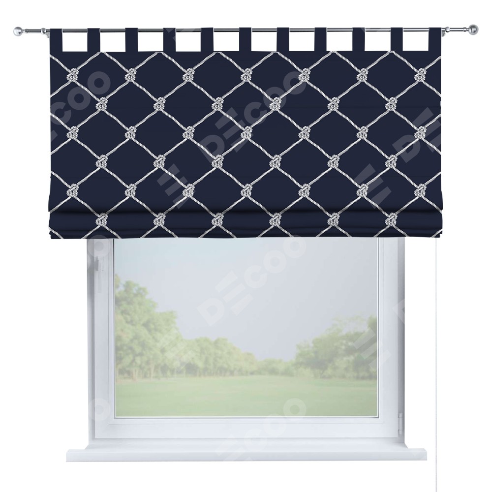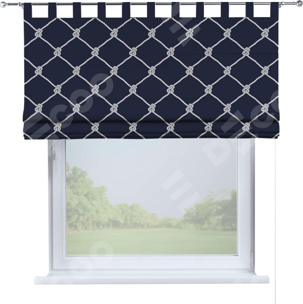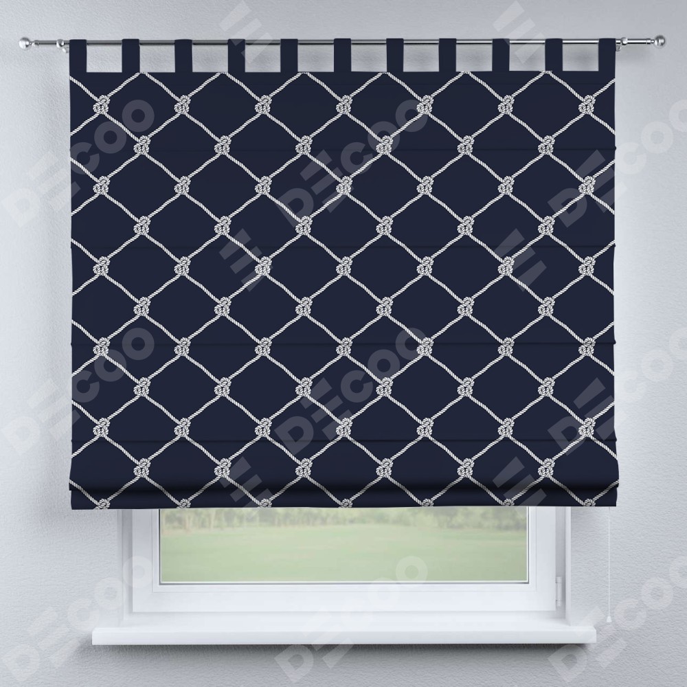 Римская штора производителя «Cortin», используется для проёма, пошита из ткани блэкаут с нанесением сублимационной печати «Морские веревки». Данная модель пошита на петлях, комплектуется на выбор круглым карнизом и подходит для монтажа на стену. Римская штора на петлях имеет простую систему регулировки высоты, отличительным преимуществом данной модели является простой способ монтажа. Достаточно повесить ее на трубу и штора готова!