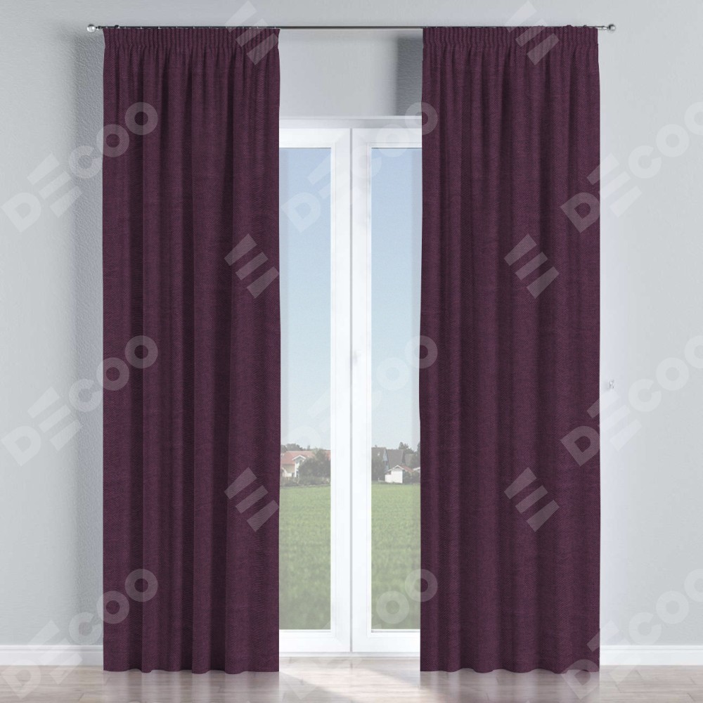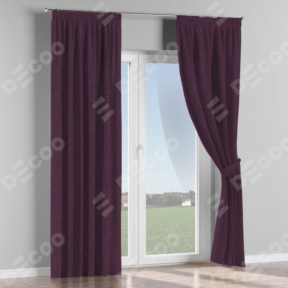 Комплект прямых штор, от производителя «Cortin», пошиты из ткани лён димаут фиолетовый, артикул ткани 16267. С изнаночной стороны в верхней части штор пристрачивается шторная лента с декоративными складками «Карандаш». Для создания элегантных складок прямые шторы шьются по стандарту с коэффициентом 1:2 (на 100 см. ширины проёма 200 см. ширины ткани).