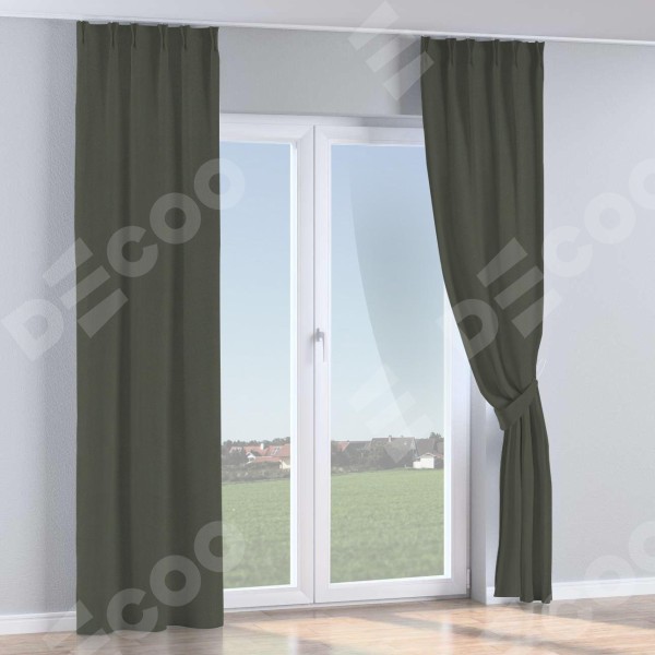Комплект прямых штор, от производителя «Cortin», пошиты из ткани блэкаут однотонный дымчато-серый, артикул ткани 91571−1. С изнаночной стороны в верхней части штор пристрачивается шторная лента с декоративными складками «Кустик». Для создания элегантных складок прямые шторы шьются по стандарту с коэффициентом 1:2 (на 100 см. ширины проёма 200 см. ширины ткани).