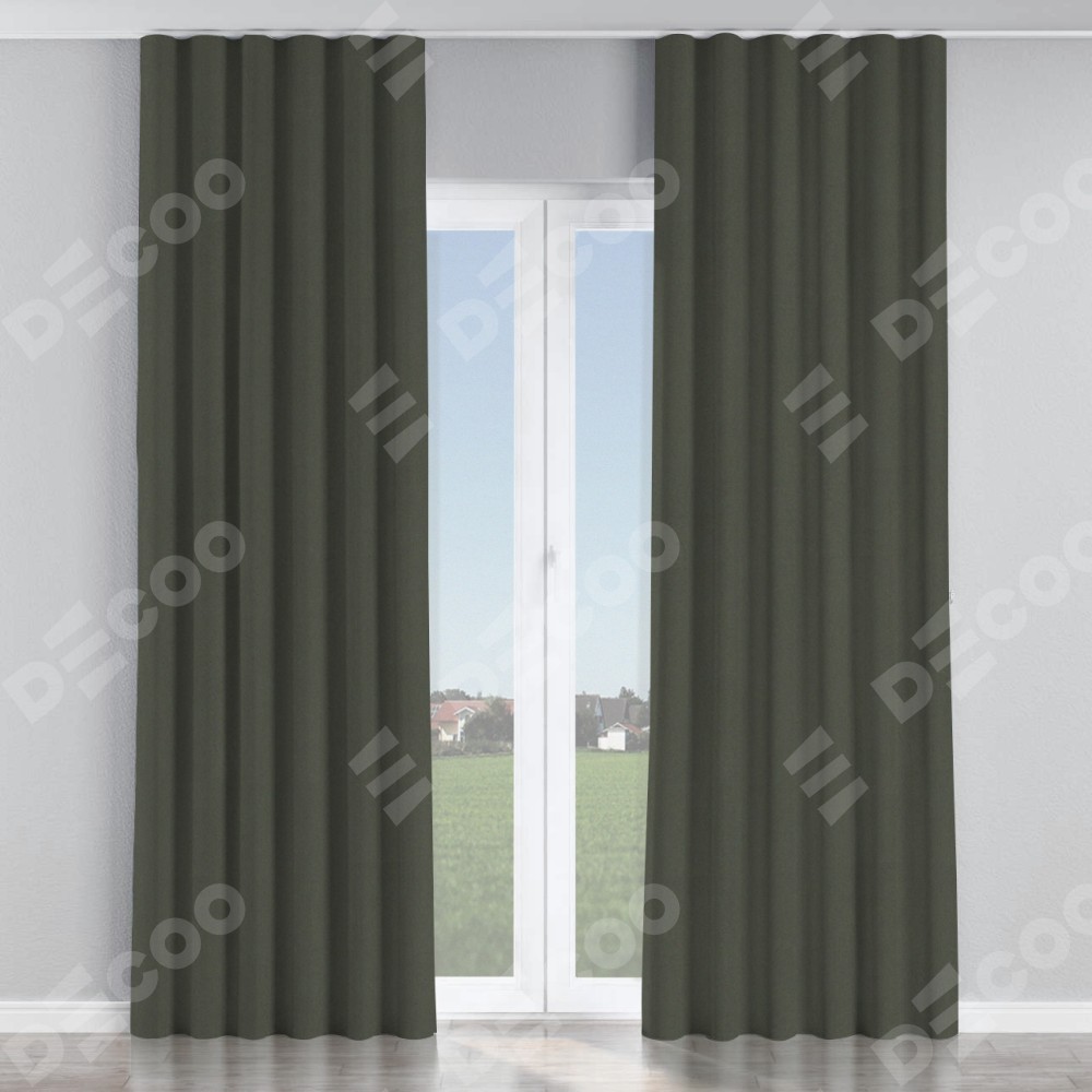 Комплект прямых штор, от производителя «Cortin», пошиты из ткани блэкаут однотонный дымчато-серый, артикул ткани 91571−1. С изнаночной стороны в верхней части штор пристрачивается шторная лента с декоративными складками «Волна». Для создания элегантных складок прямые шторы шьются по стандарту с коэффициентом 1:2 (на 100 см. ширины проёма 200 см. ширины ткани).