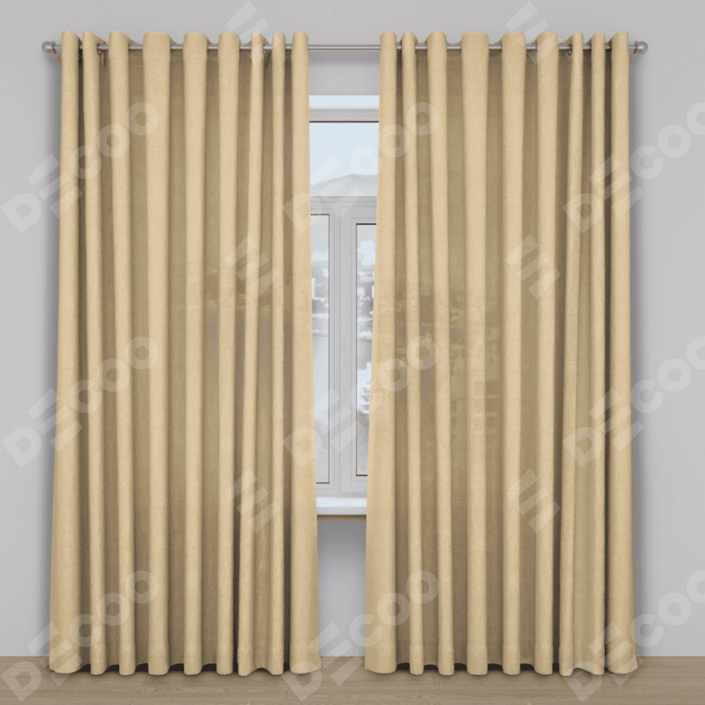 Комплект прямых штор, от производителя «Cortin», пошиты из ткани софт однотонный бежевый, артикул ткани 4202. Данная модель пошита на люверсах, комплектуется на выбор круглым карнизом и подходит для монтажа на стену. Прямые шторы на люверсах шьются по стандарту с коэффициентом 1/2 (на 100 см. ширины проёма 200 см. ширины ткани), отличительным преимуществом данной модели является простой способ монтажа. Достаточно повесить ее на трубу и штора готова!