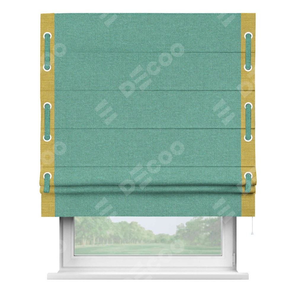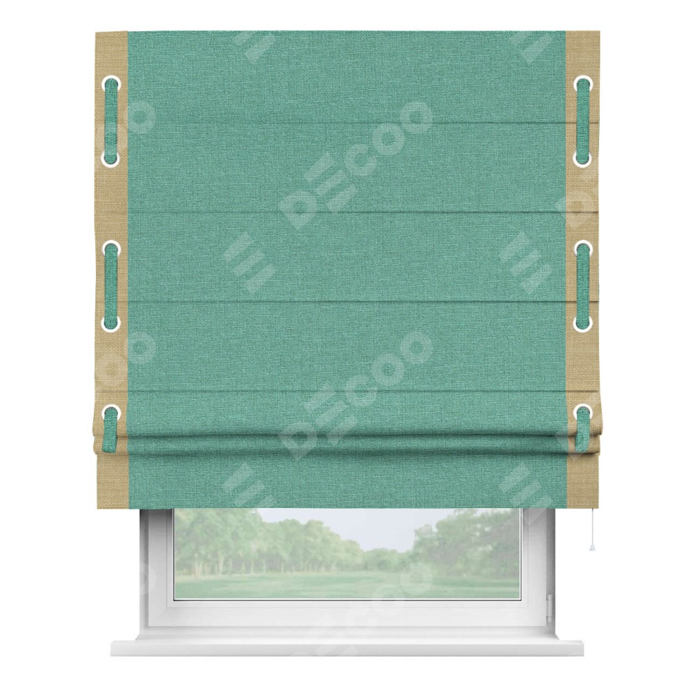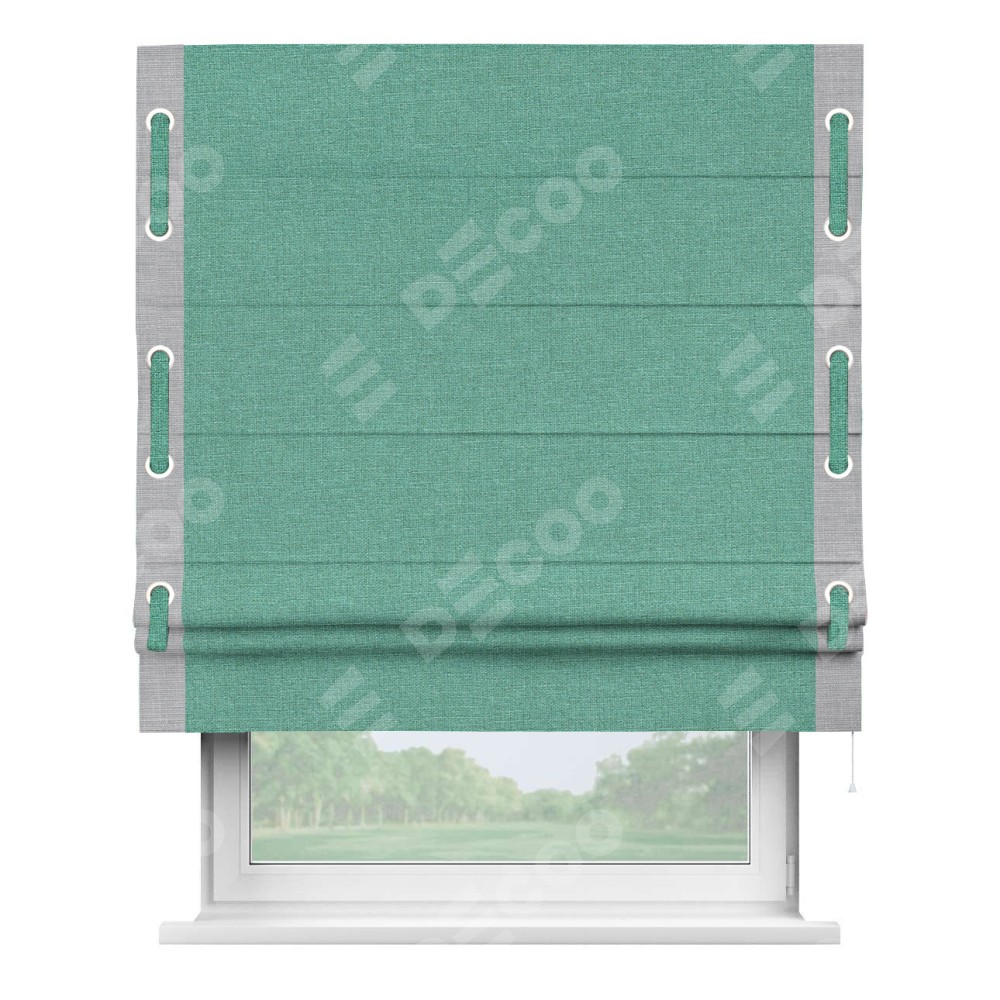 Римская штора «Кортин» с кантом Стрим Дуо (люверсы с пояском), для проема, лён светло-бирюзовый