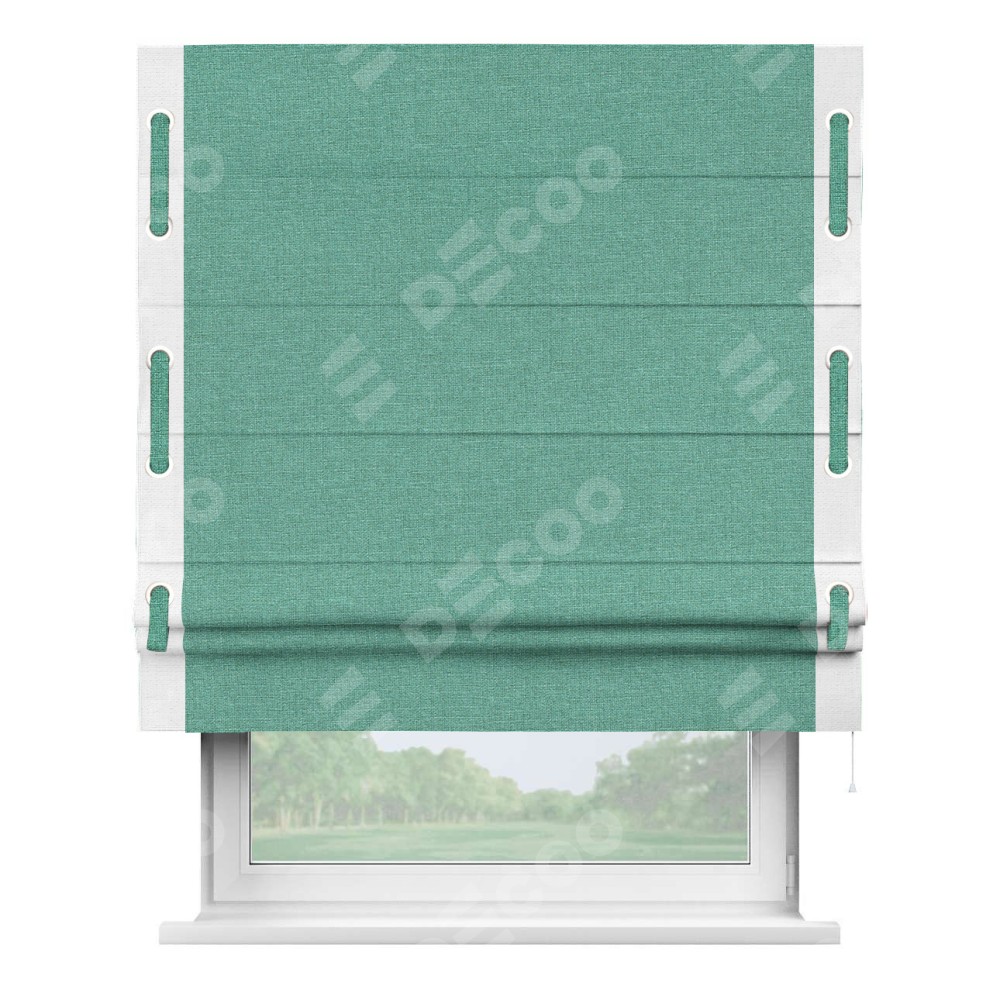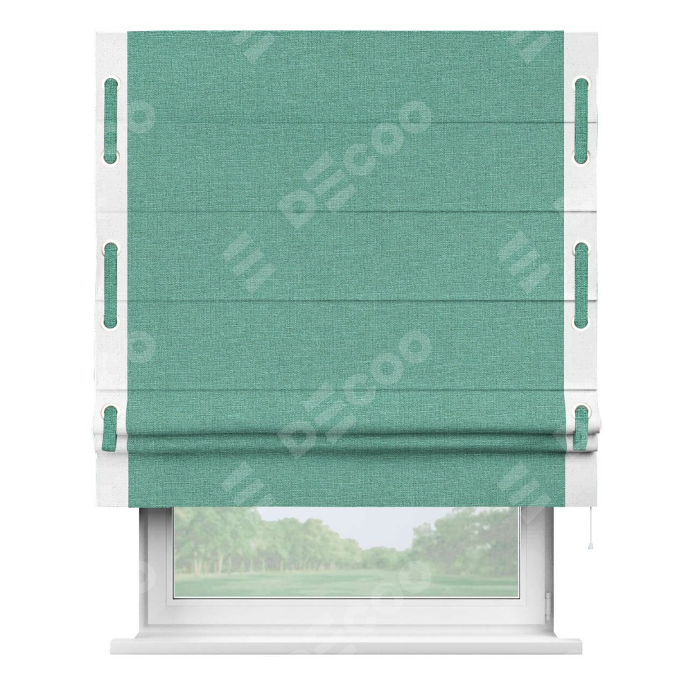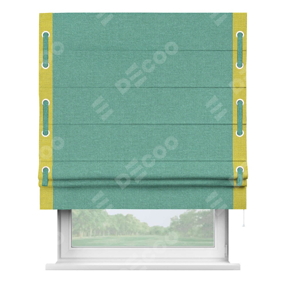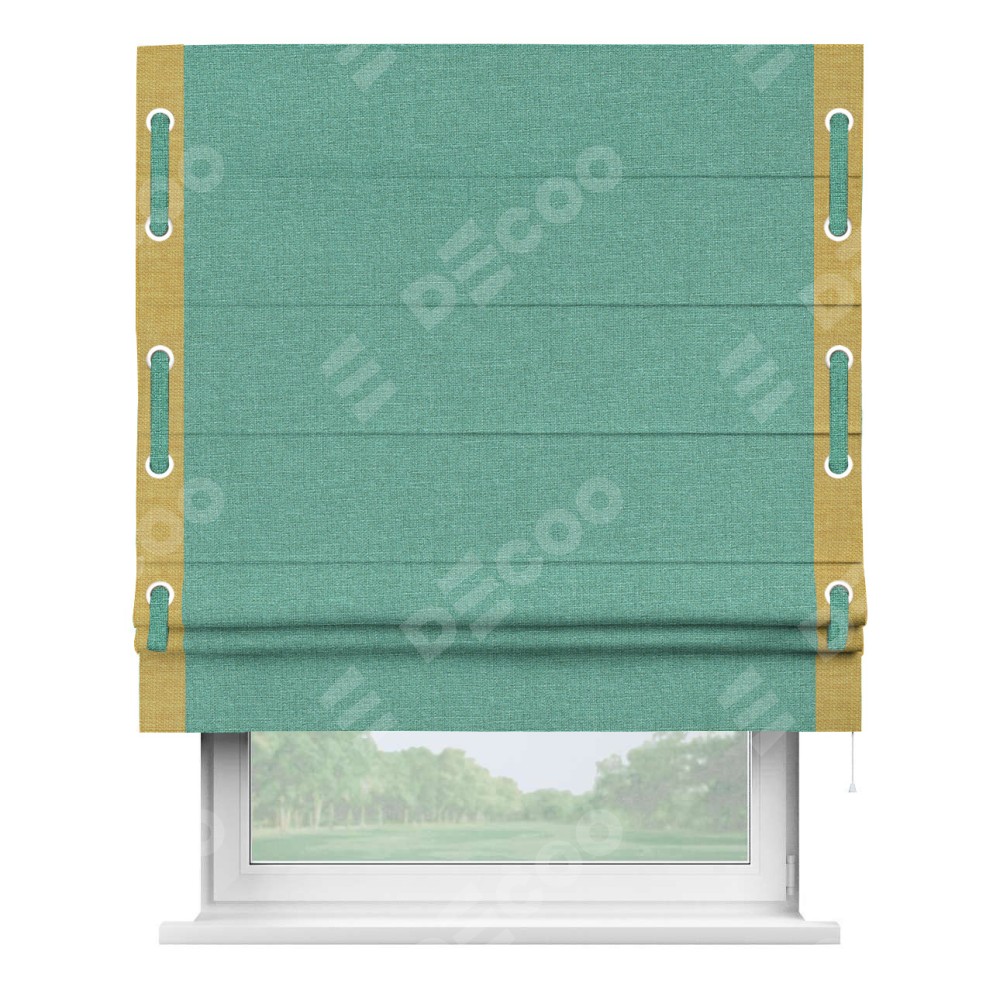 Римская штора «Кортин» с кантом Стрим Дуо (люверсы с пояском), для проема, лён светло-бирюзовый