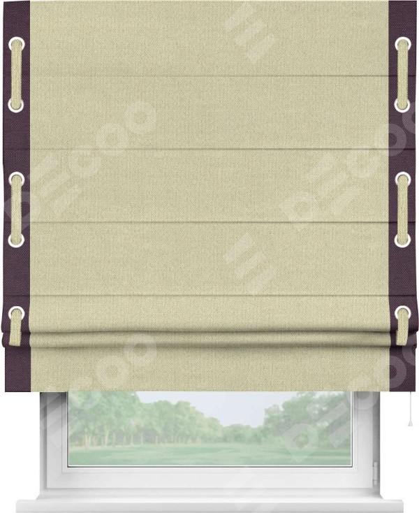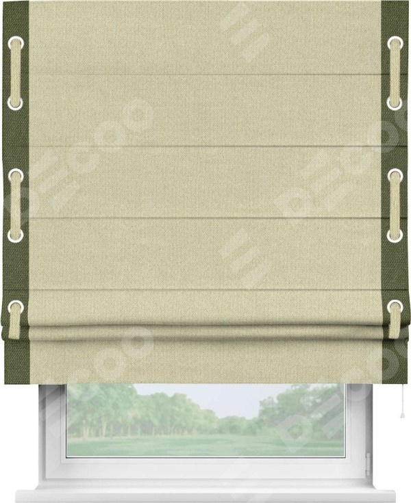 Римская штора «Кортин» с кантом Стрим Дуо (люверсы с пояском), для проема, ткань лён димаут, шампань