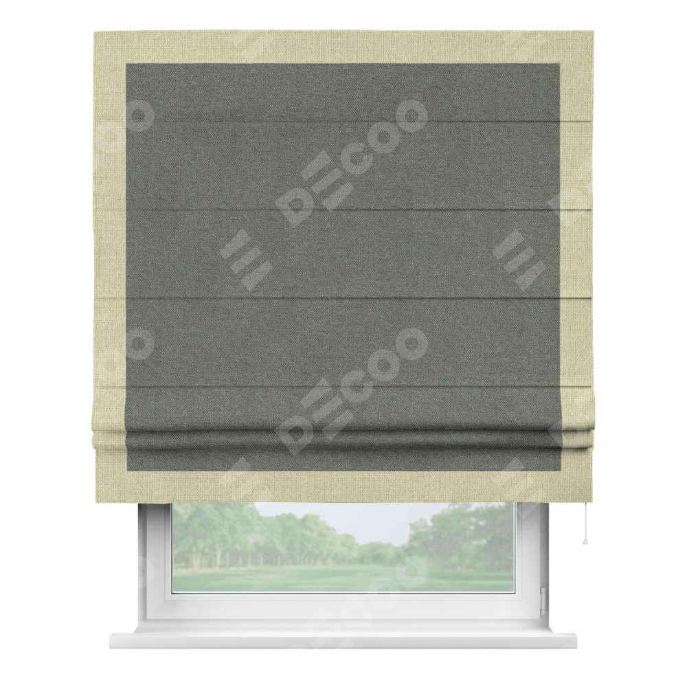 Римская штора «Кортин» с кантом Чесс, для проема, ткань лён димаут, тёмно-серый