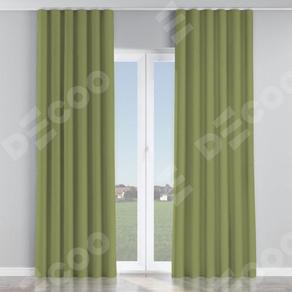 Комплект прямых штор, от производителя «Cortin», пошиты из ткани бархат золотая оливка, артикул ткани 90725. С изнаночной стороны в верхней части штор пристрачивается шторная лента с декоративными складками «Волна». Для создания элегантных складок прямые шторы шьются по стандарту с коэффициентом 1:2 (на 100 см. ширины проёма 200 см. ширины ткани).