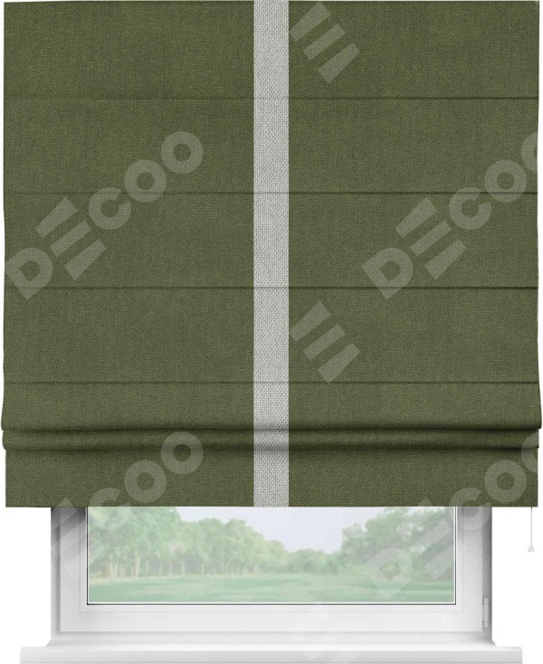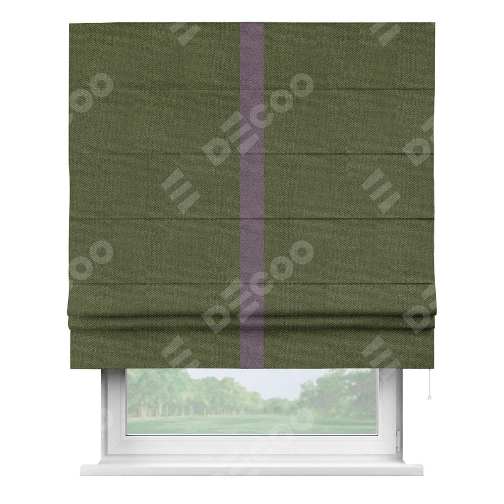 Римская штора «Кортин» для проема, лён димаут салатовый с кантом Хайвэй