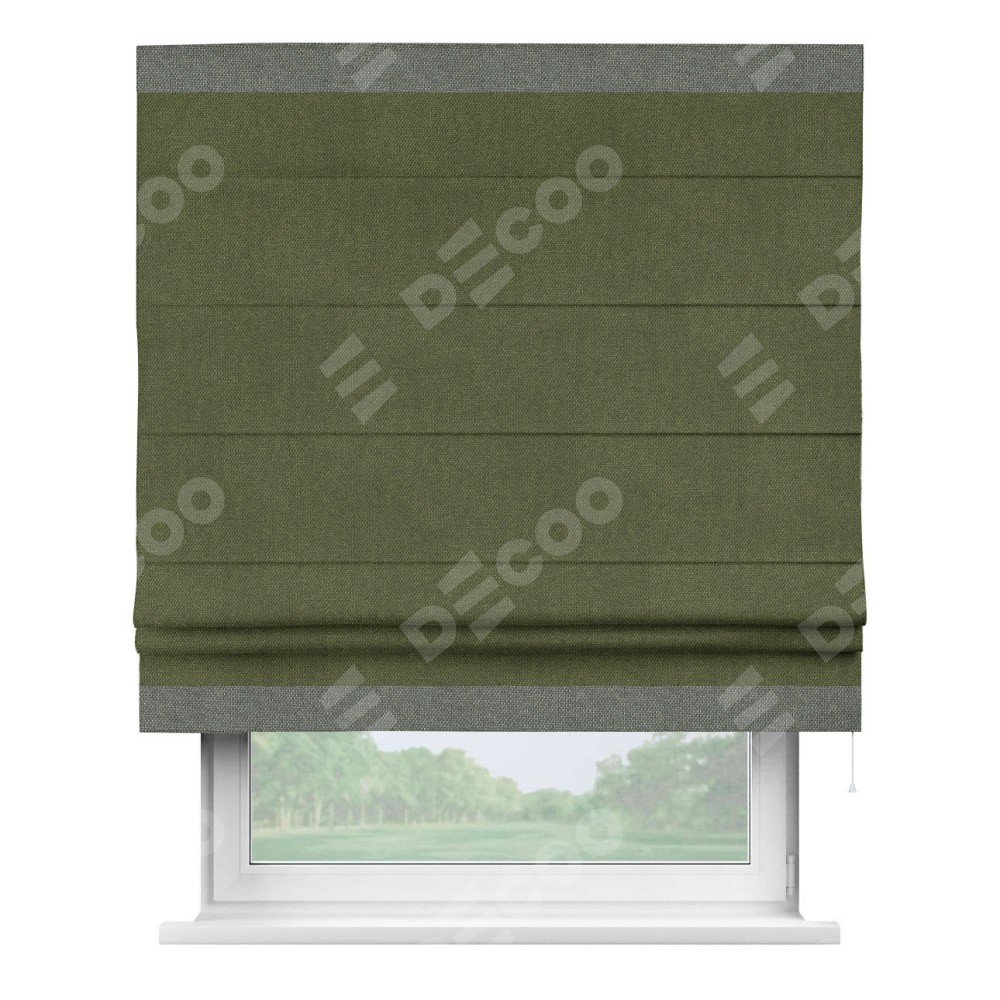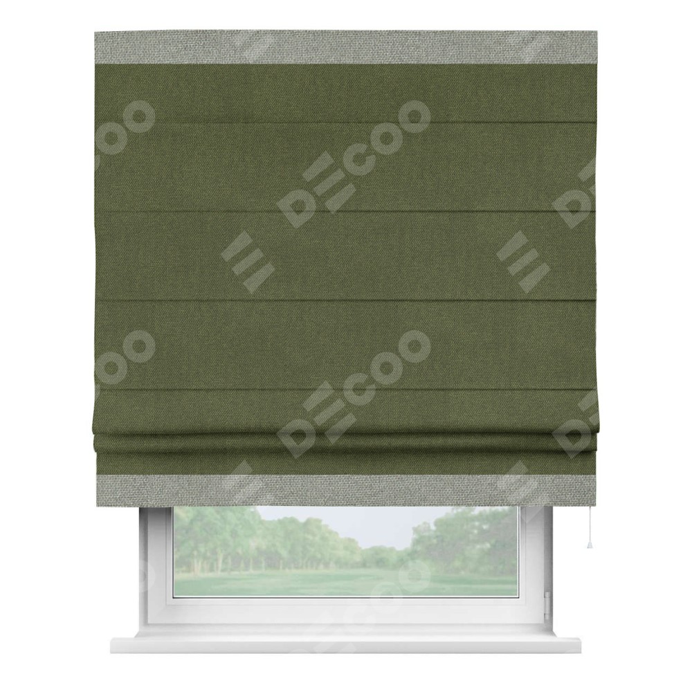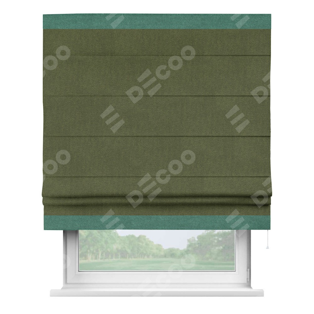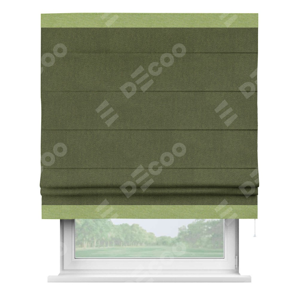 Римская штора «Кортин» для проема, лён димаут салатовый с кантом Горизонт