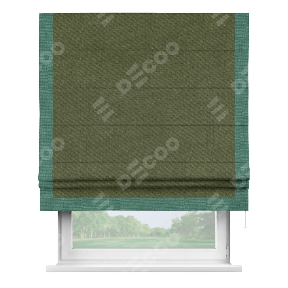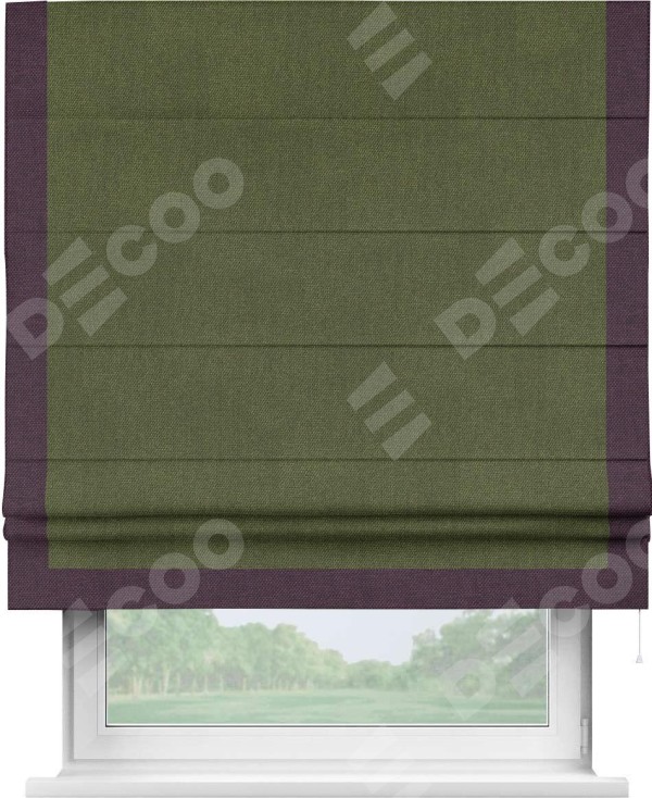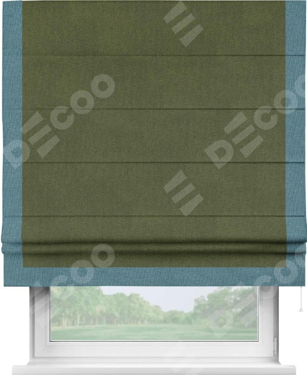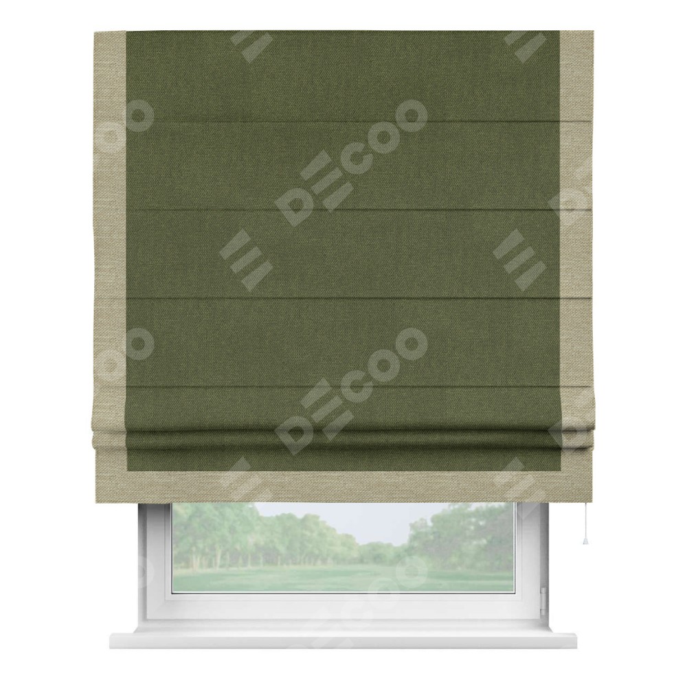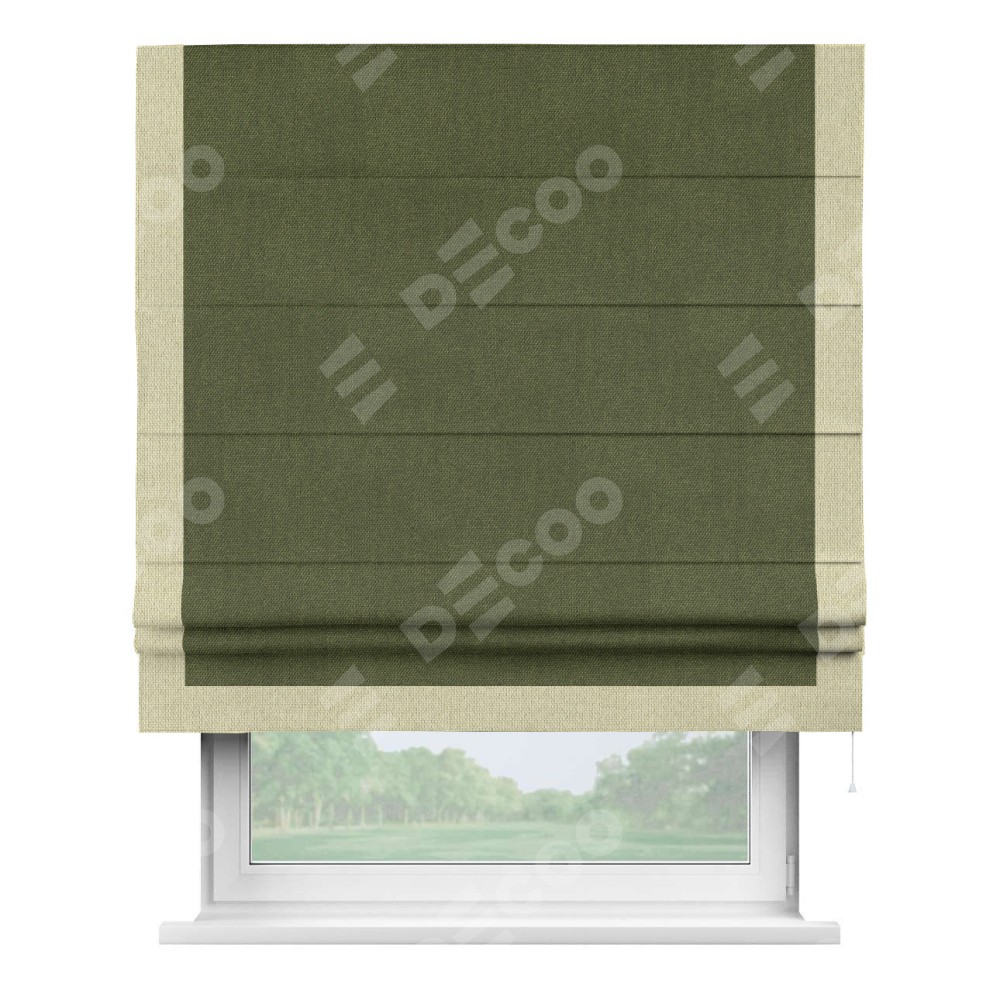 Римская штора «Кортин» для проема, лён димаут салатовый с кантом Виктория