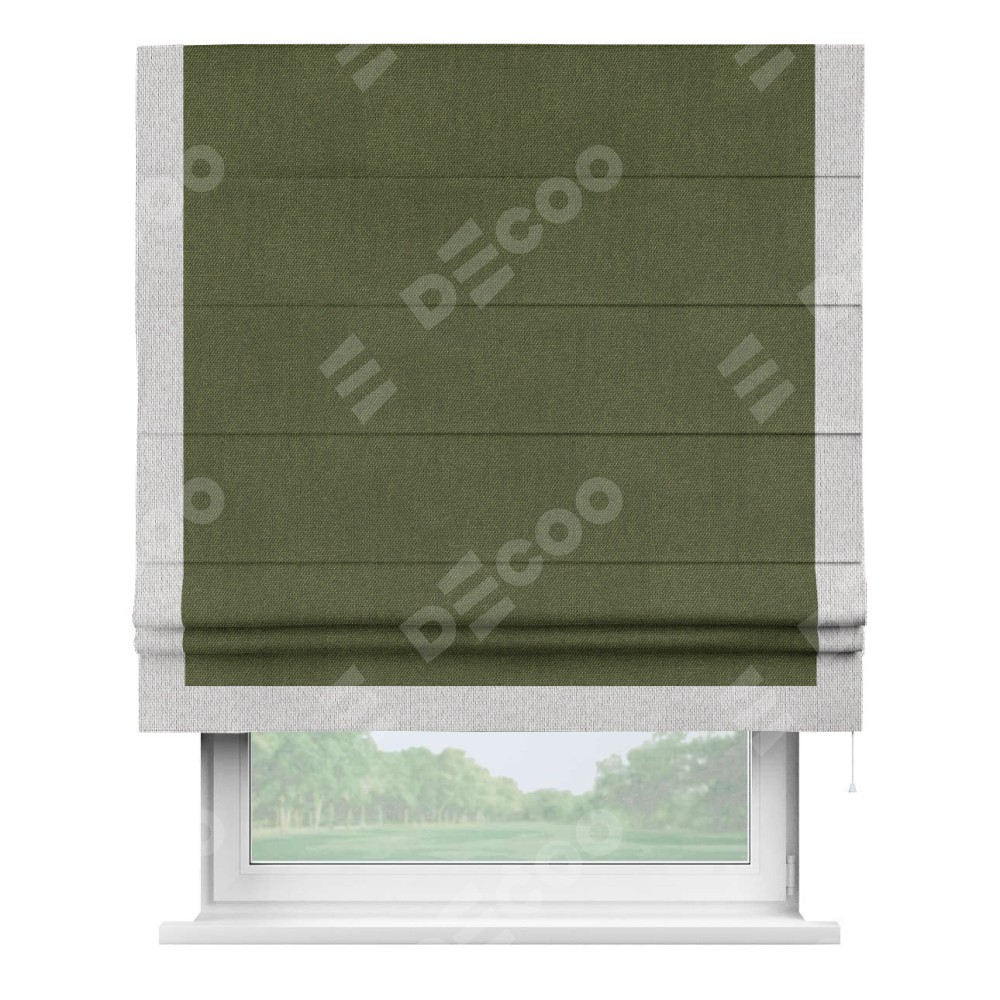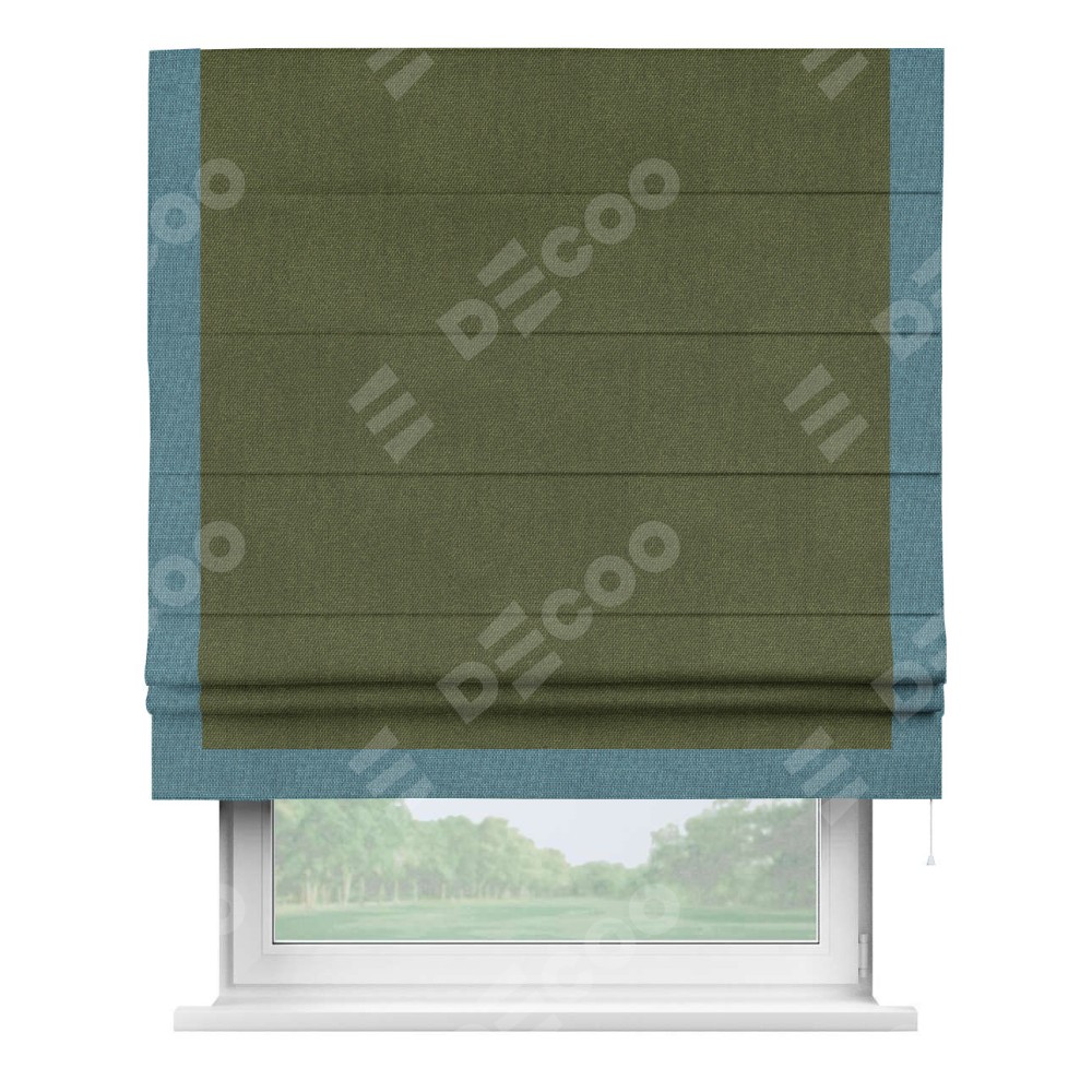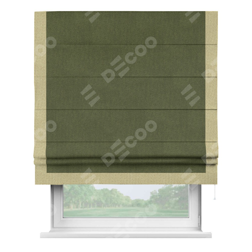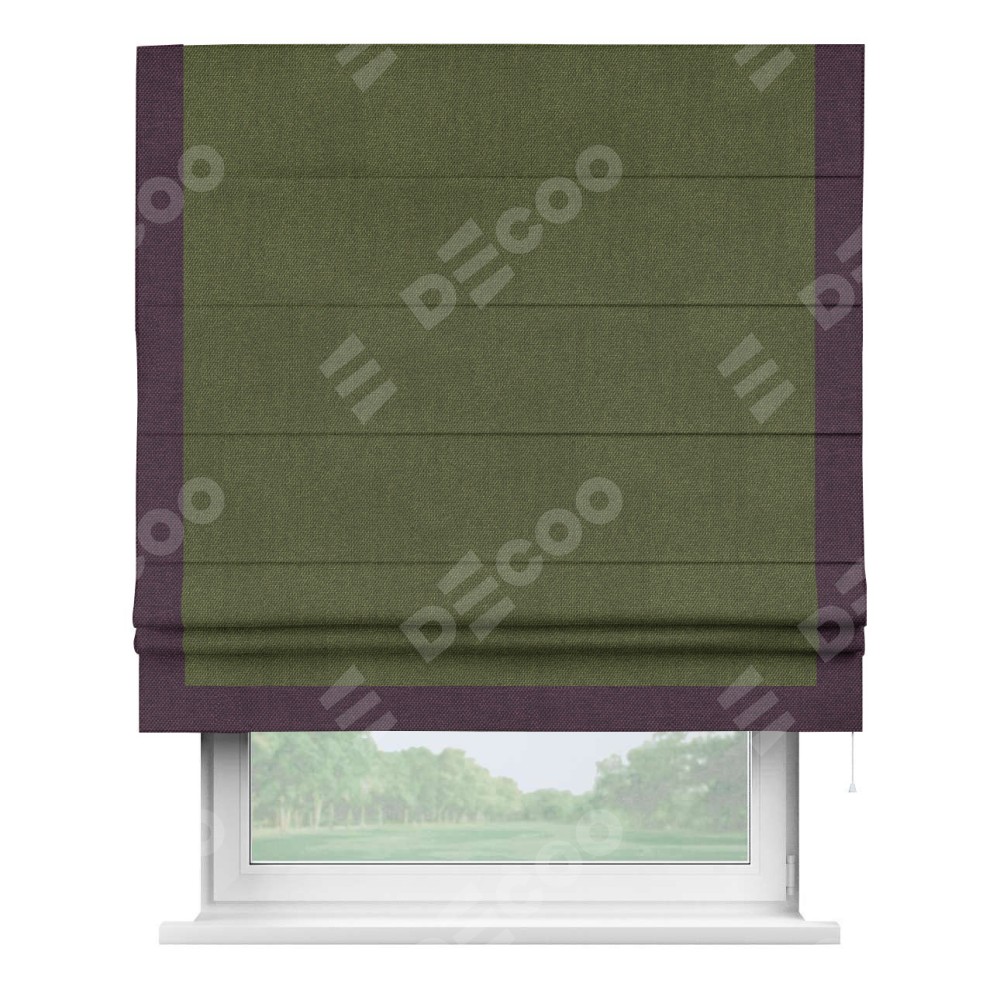 Римская штора «Кортин» для проема, лён димаут салатовый с кантом Виктория