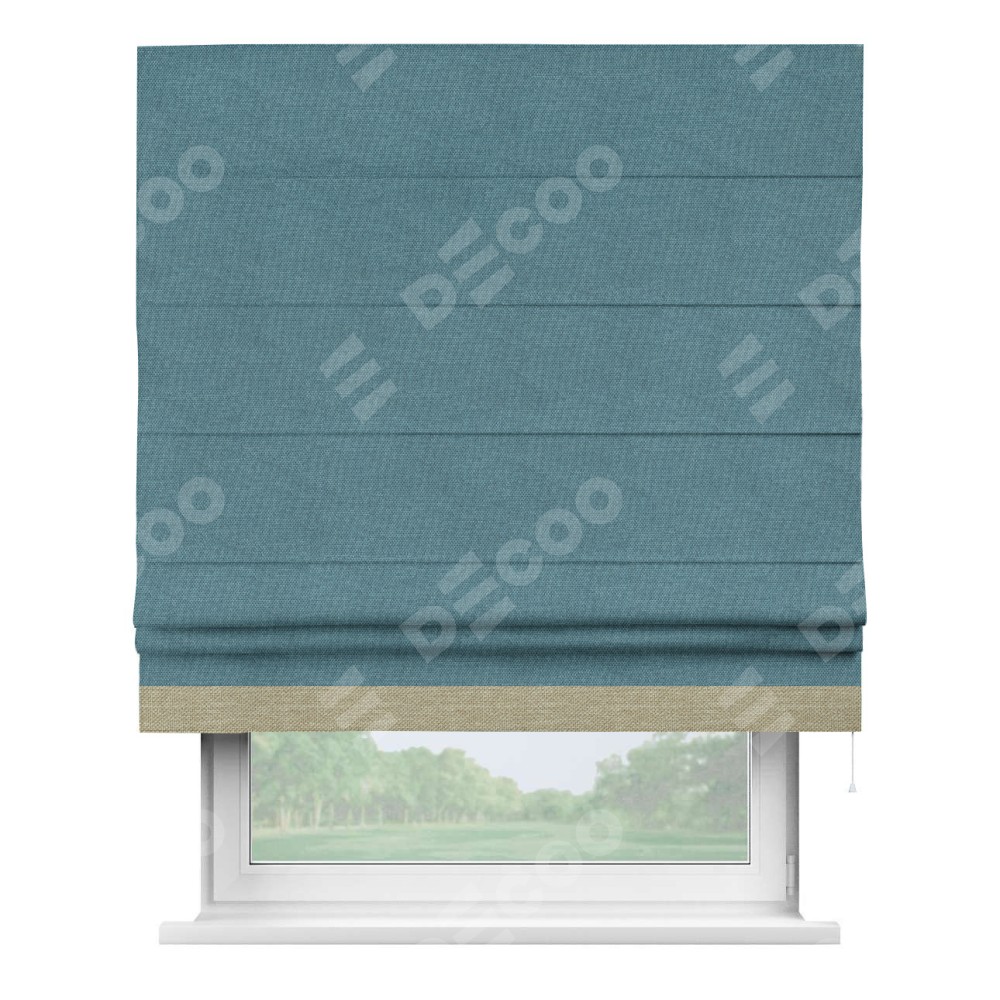 Римская штора «Кортин» для проема, лён димаут светло-синий с кантом Джестер