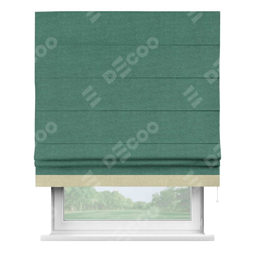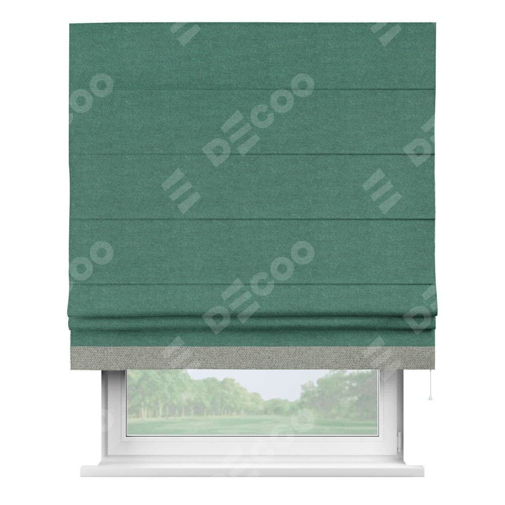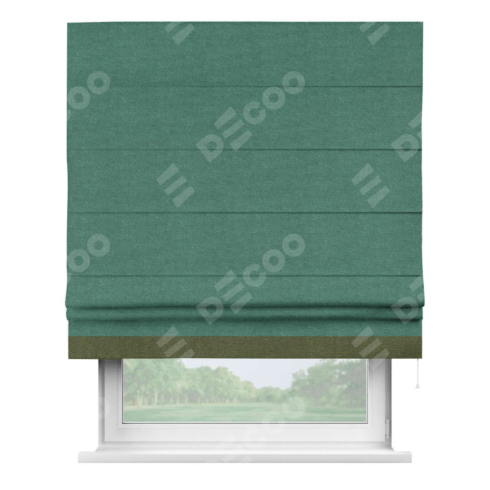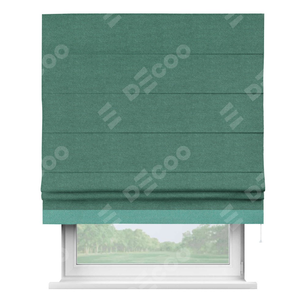 Римская штора «Кортин» для проема, лён димаут светло-бирюзовый с кантом Джестер