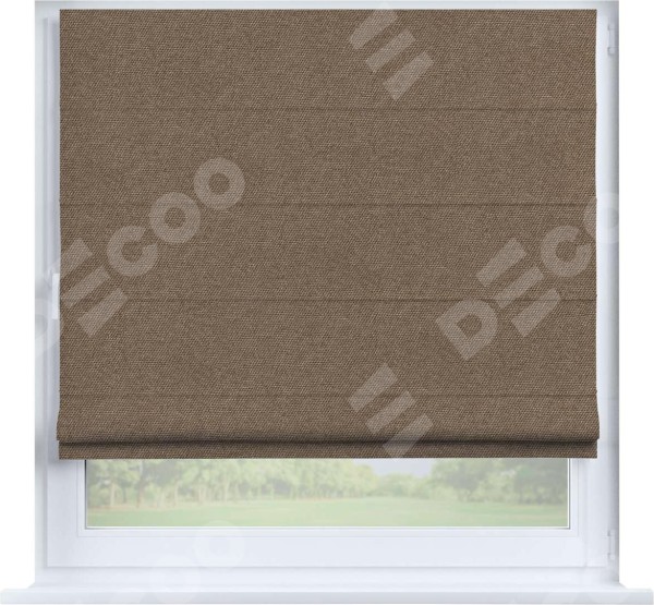 Римская штора производителя «Cortin», устанавливается на створку окна, пошита из ткани лён димаут коричневый, артикул 90996. Штора шьётся по индивидуальным размерам, для данного типа римской шторы возможная ширина от 35 до 150 см., высота до 250 см.