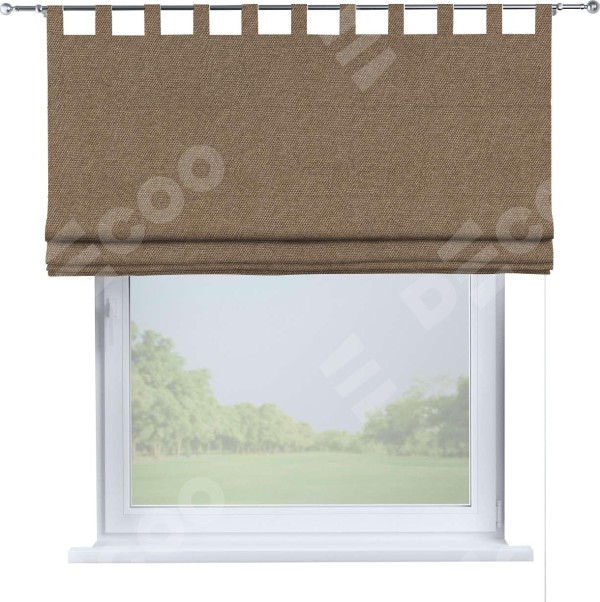Римская штора производителя «Cortin», используется для проёма, пошита из ткани лён димаут коричневый, артикул ткани 90996. Данная модель пошита на петлях, комплектуется на выбор круглым карнизом и подходит для монтажа на стену. Римская штора на петлях имеет простую систему регулировки высоты, отличительным преимуществом данной модели является простой способ монтажа. Достаточно повесить ее на трубу и штора готова!