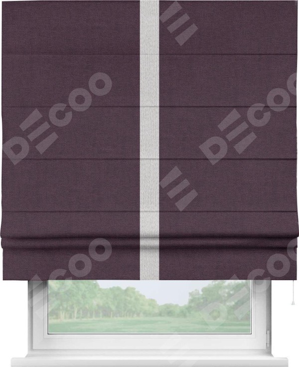 Римская штора «Кортин» для проема, лён димаут фиолетовый с кантом Хайвэй
