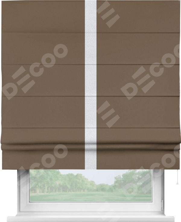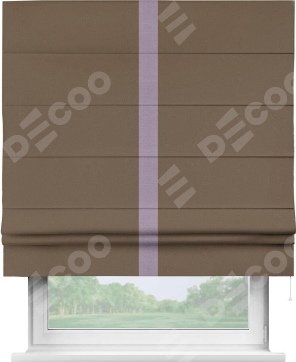 Римская штора «Кортин» для проема, блэкаут однотонный коричневый с кантом Хайвэй