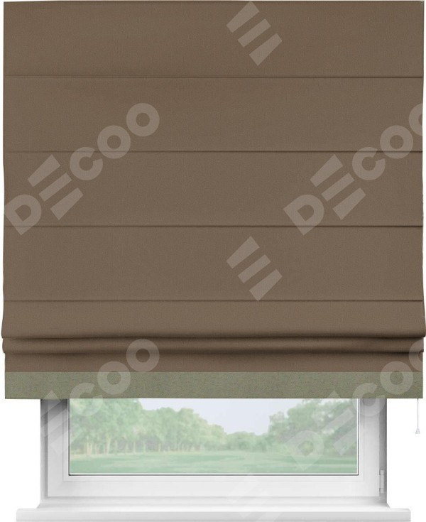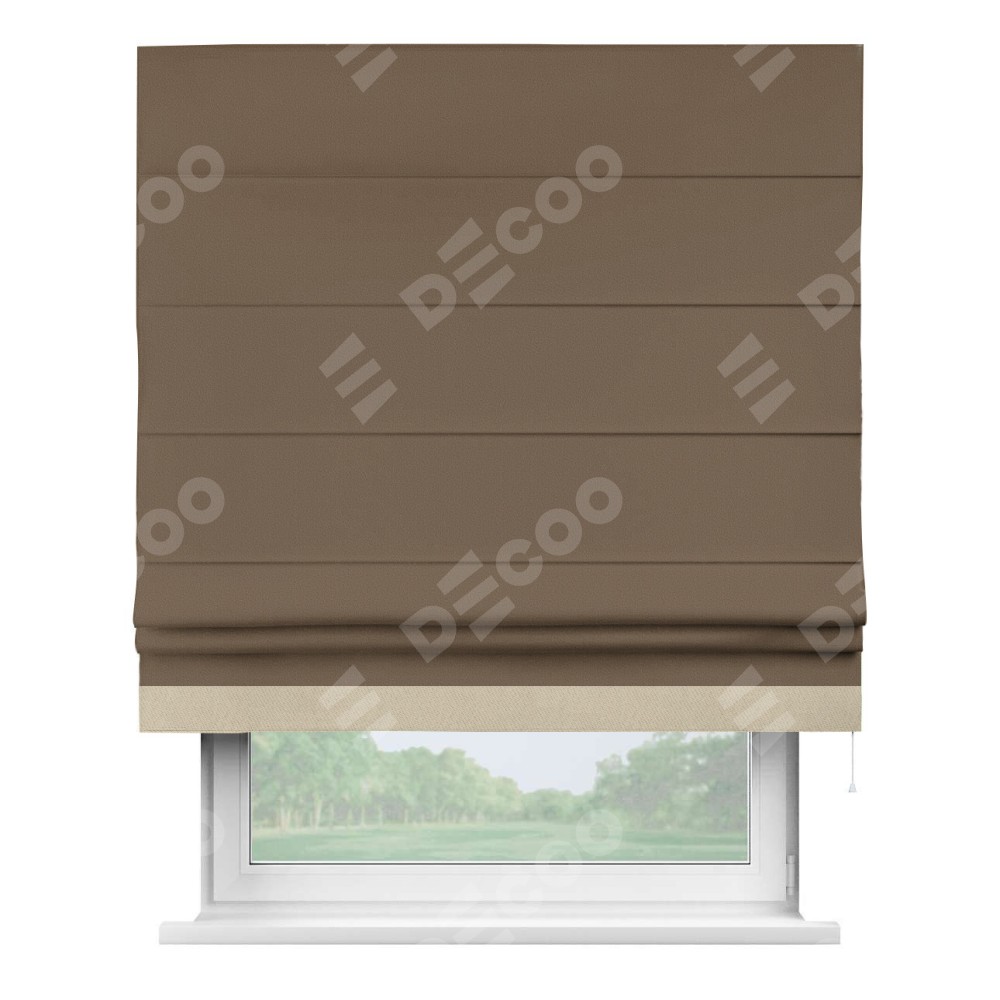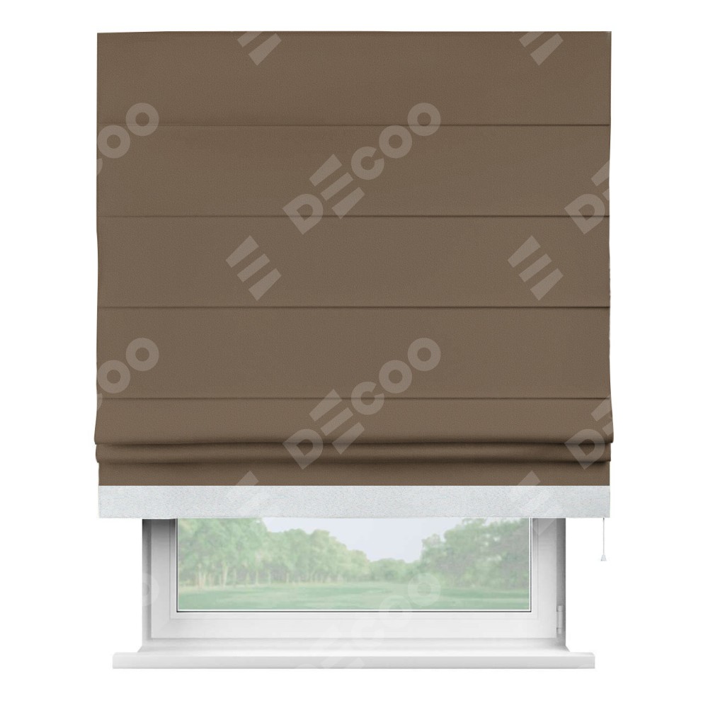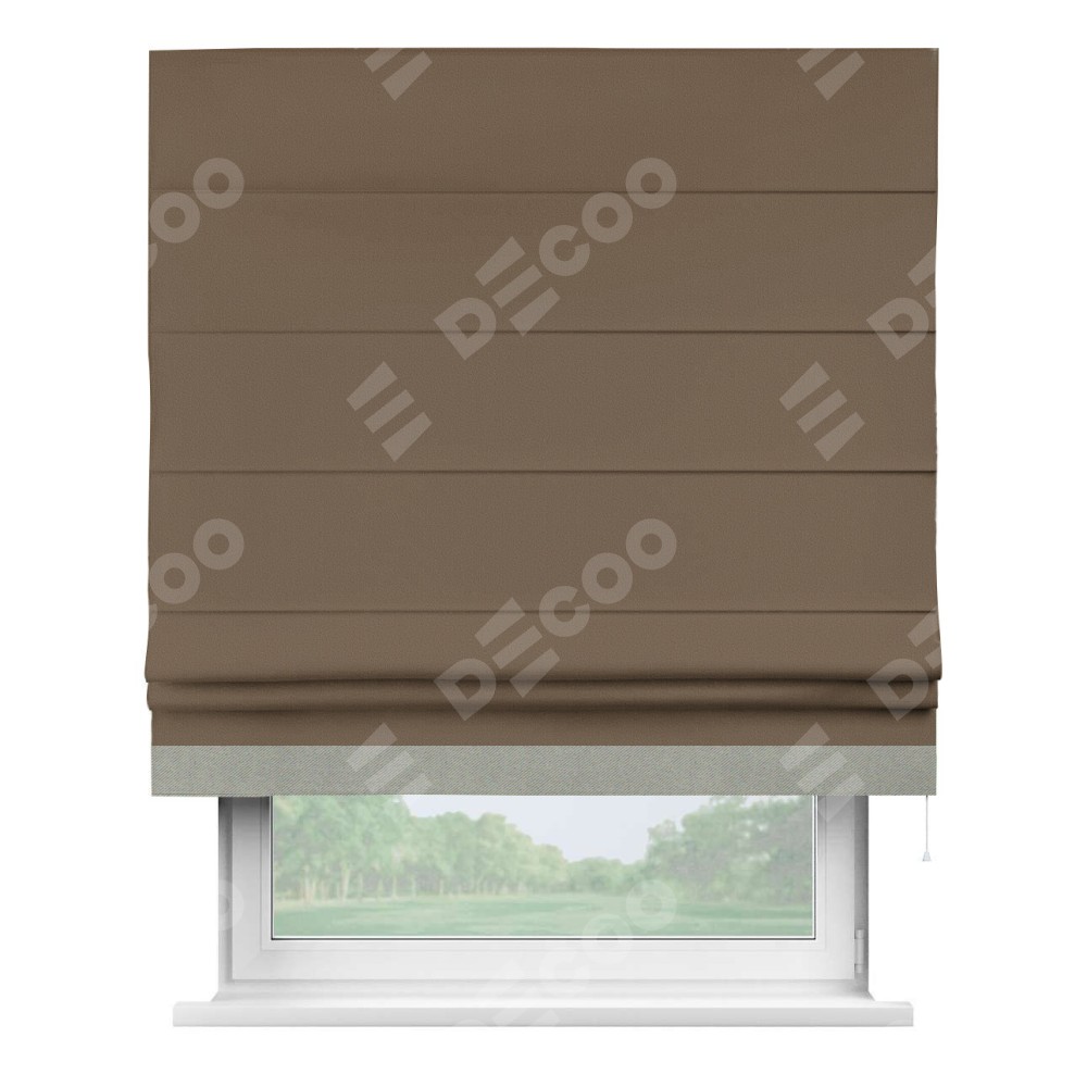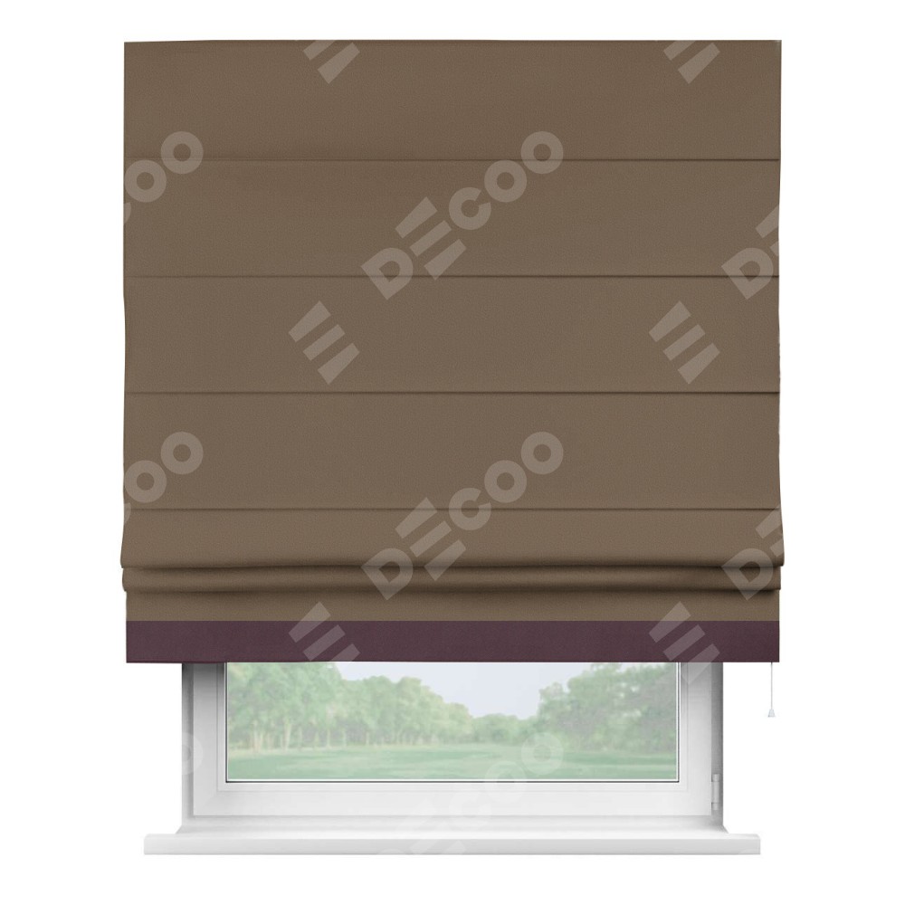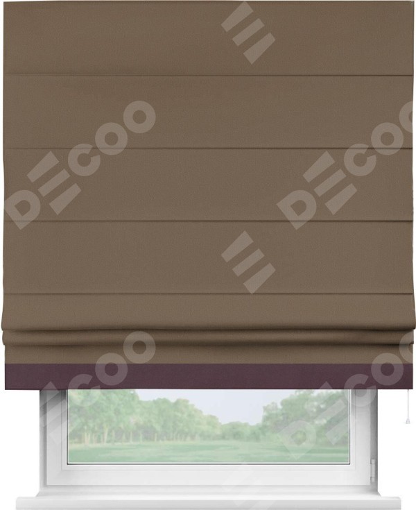 Римская штора «Кортин» для проема, блэкаут однотонный коричневый с кантом Джестер